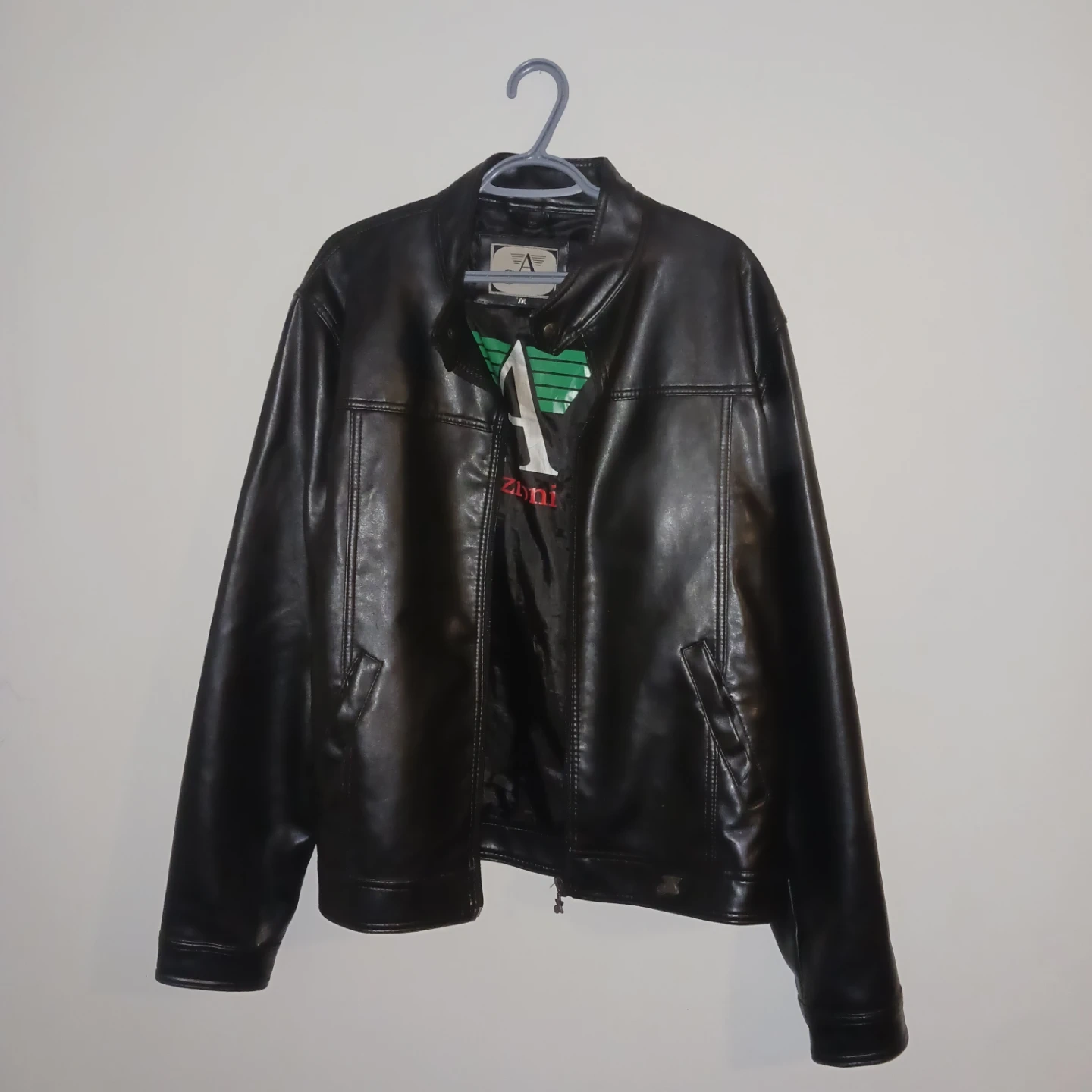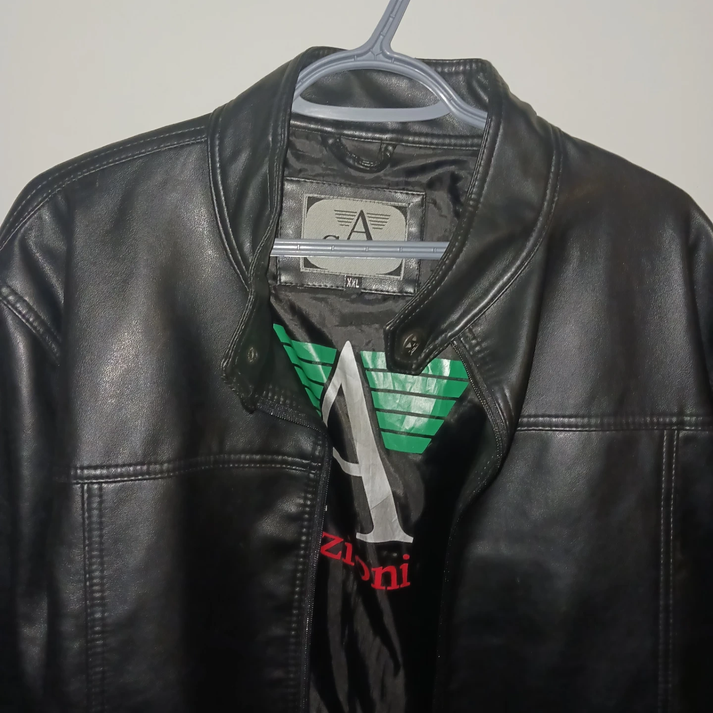 Selling a black Armani Collezioni leather jacket in size XXL. It's in great condition and ready for a new owner!