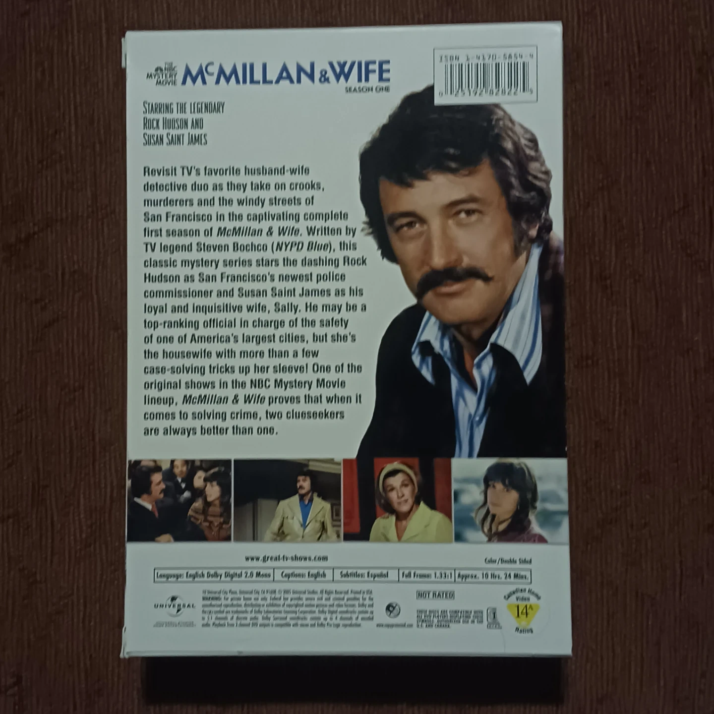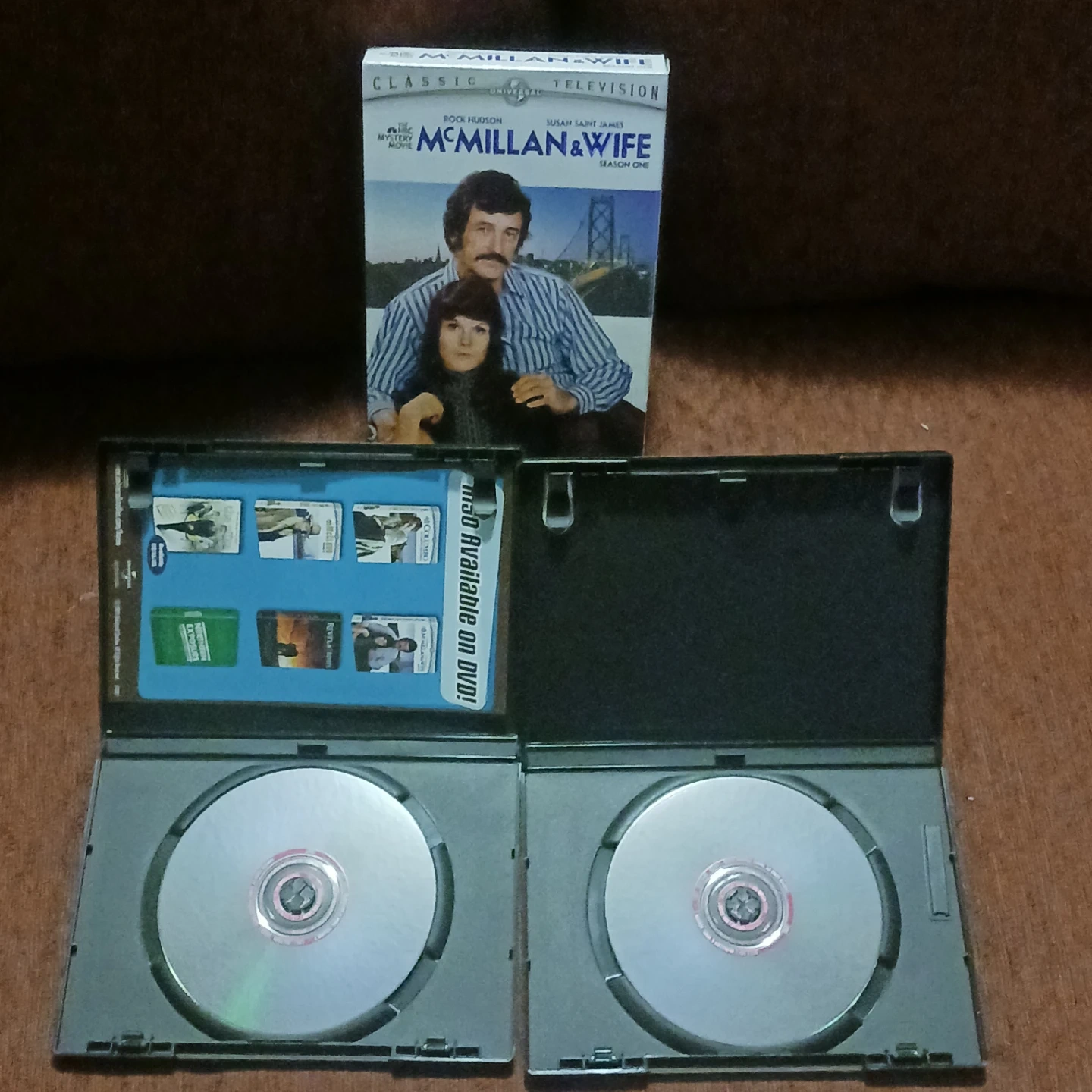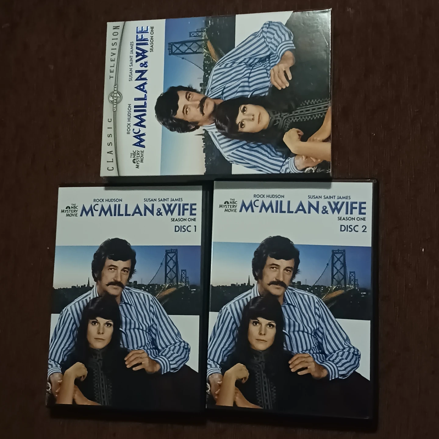 Selling a complete DVD set of McMillan & Wife: Season One. This classic TV series stars Rock Hudson and Susan Saint James as the charming detective duo. The set includes both Disc 1 and Disc 2, all in good condition. Perfect for fans of classic mystery TV!