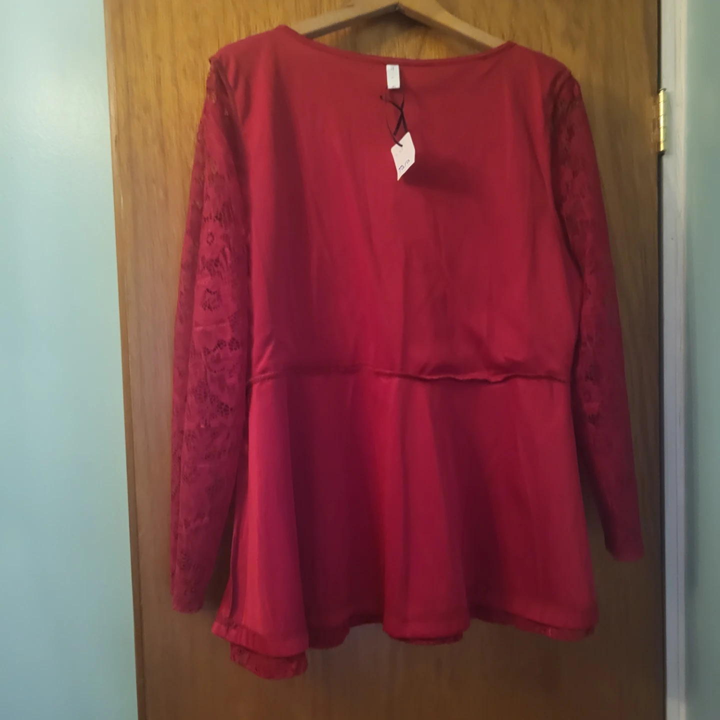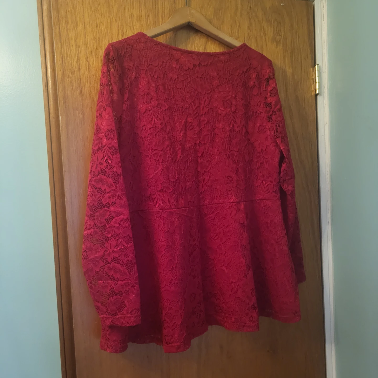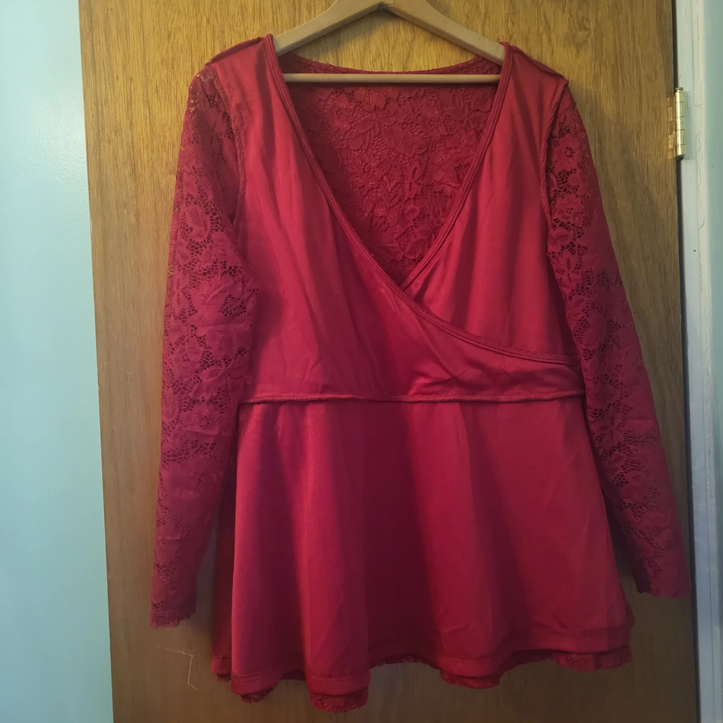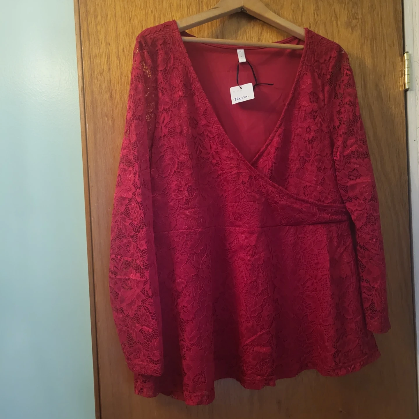 Selling a beautiful red lace long sleeve top in size L. It's in new condition with tags still attached! The lace detailing adds a touch of elegance to this top. Perfect for dressing up or down