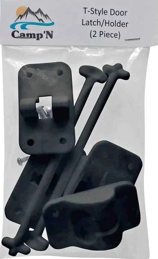 Camp'N 6" RV Door Holder and Latch - Camper & Trailer Door Catch - T Style OEM - Black 2 Pack with Hardware