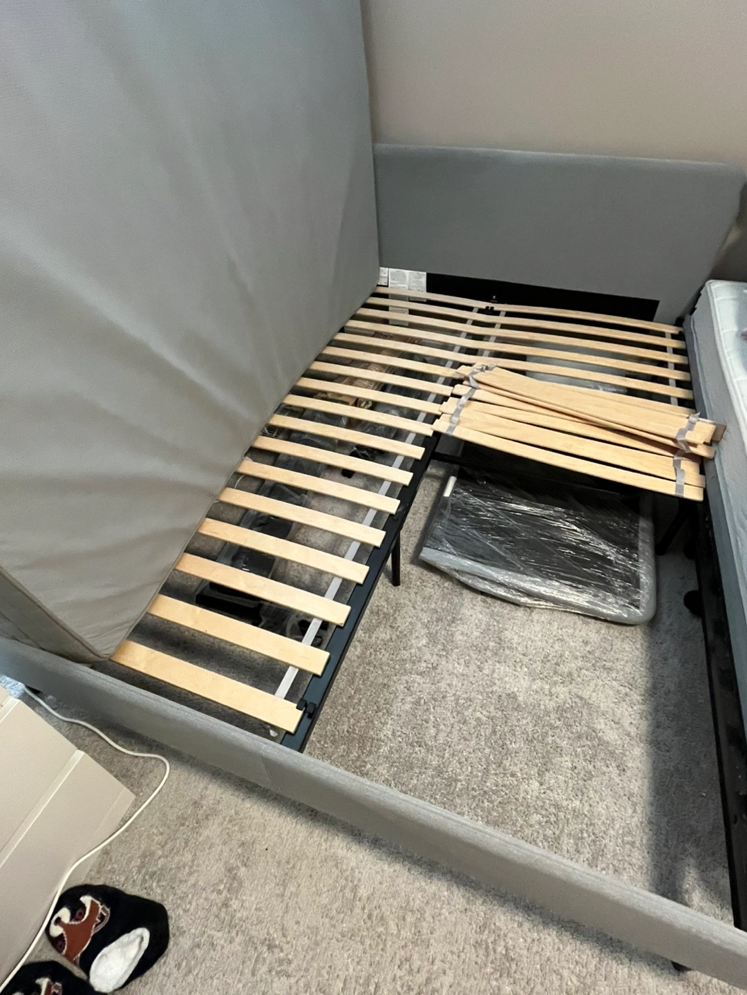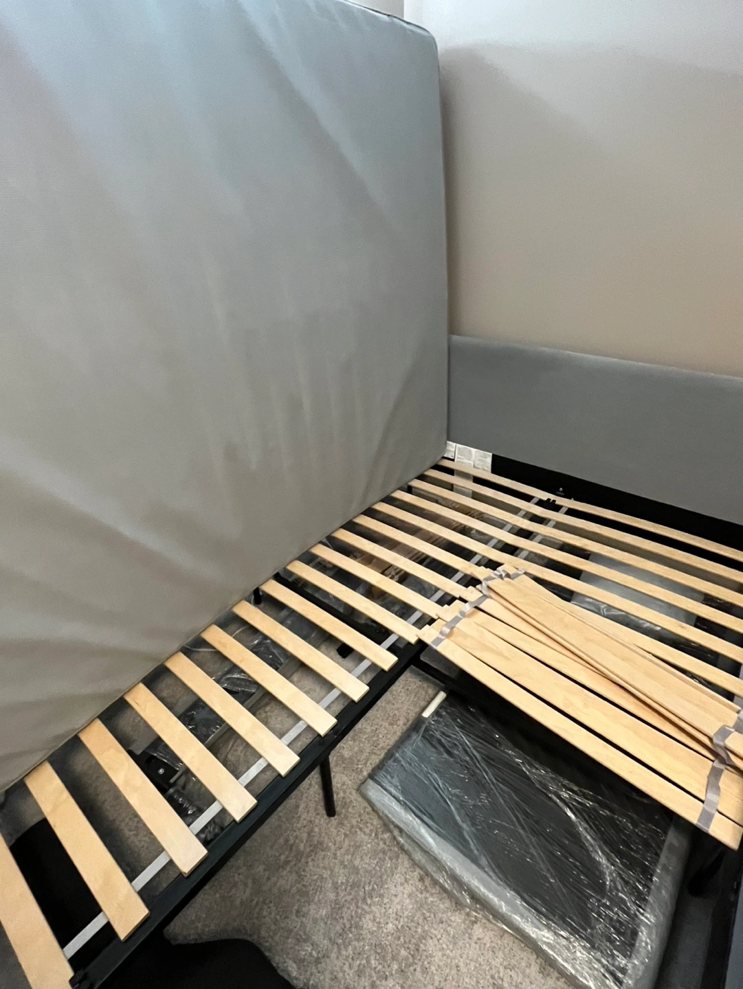 Gray Bed Frame with Slats