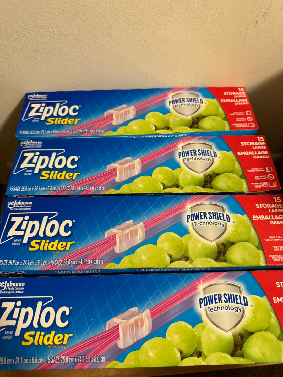 Brand new Ziploc Slider Storage Bags with Power Shield Technology.