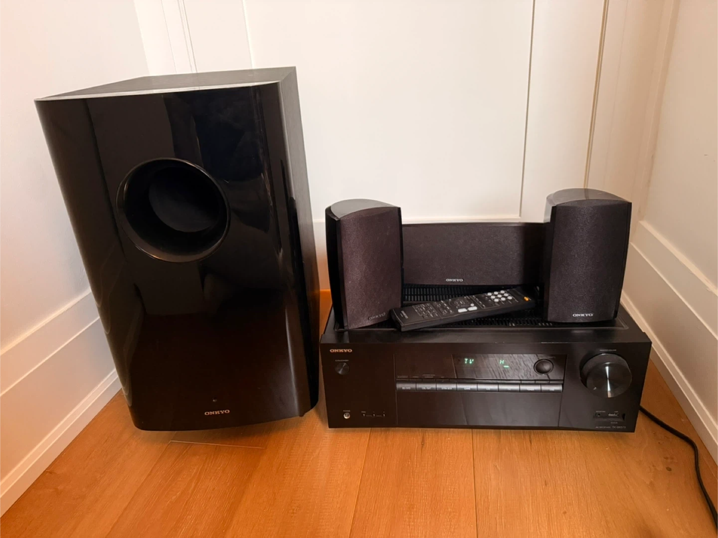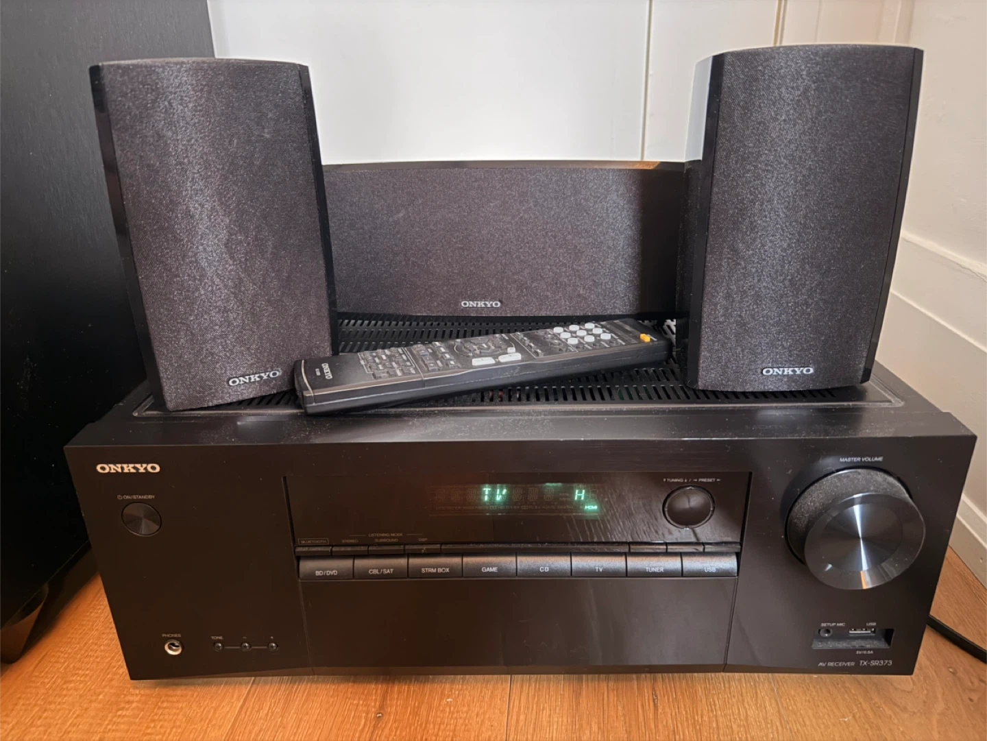 Selling an Onkyo AV Receiver TX-SR373. Also included are the accompanying speakers and subwoofer. Great for a home theatre setup! Very good condition and still working.