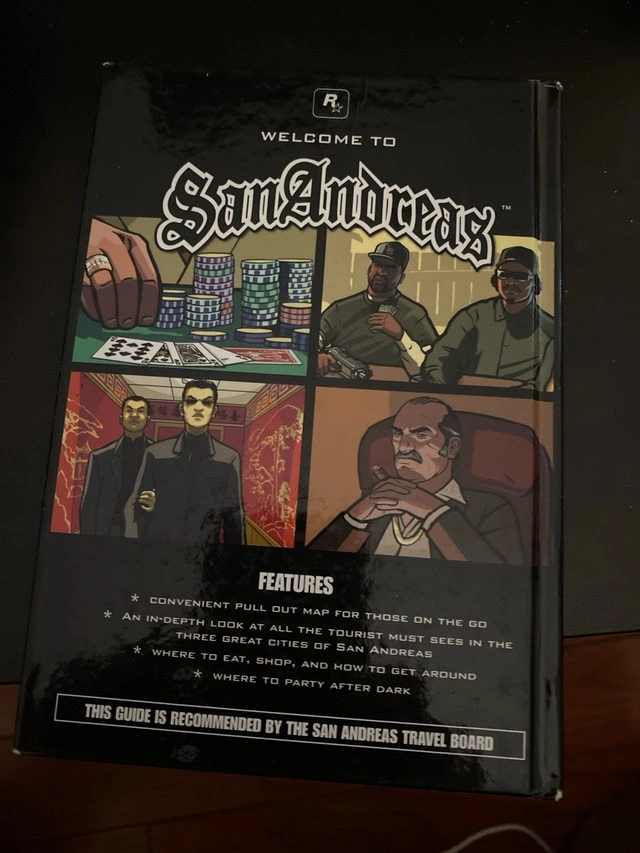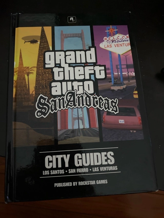 Dive into the world of Grand Theft Auto: San Andreas with this Rockstar Games city guide, offering insights into Los Santos, San Fierro, and Las Venturas. This book is in used condition, showing some wear, but is still packed with valuable information and tips for navigating the game's sprawling landscapes.