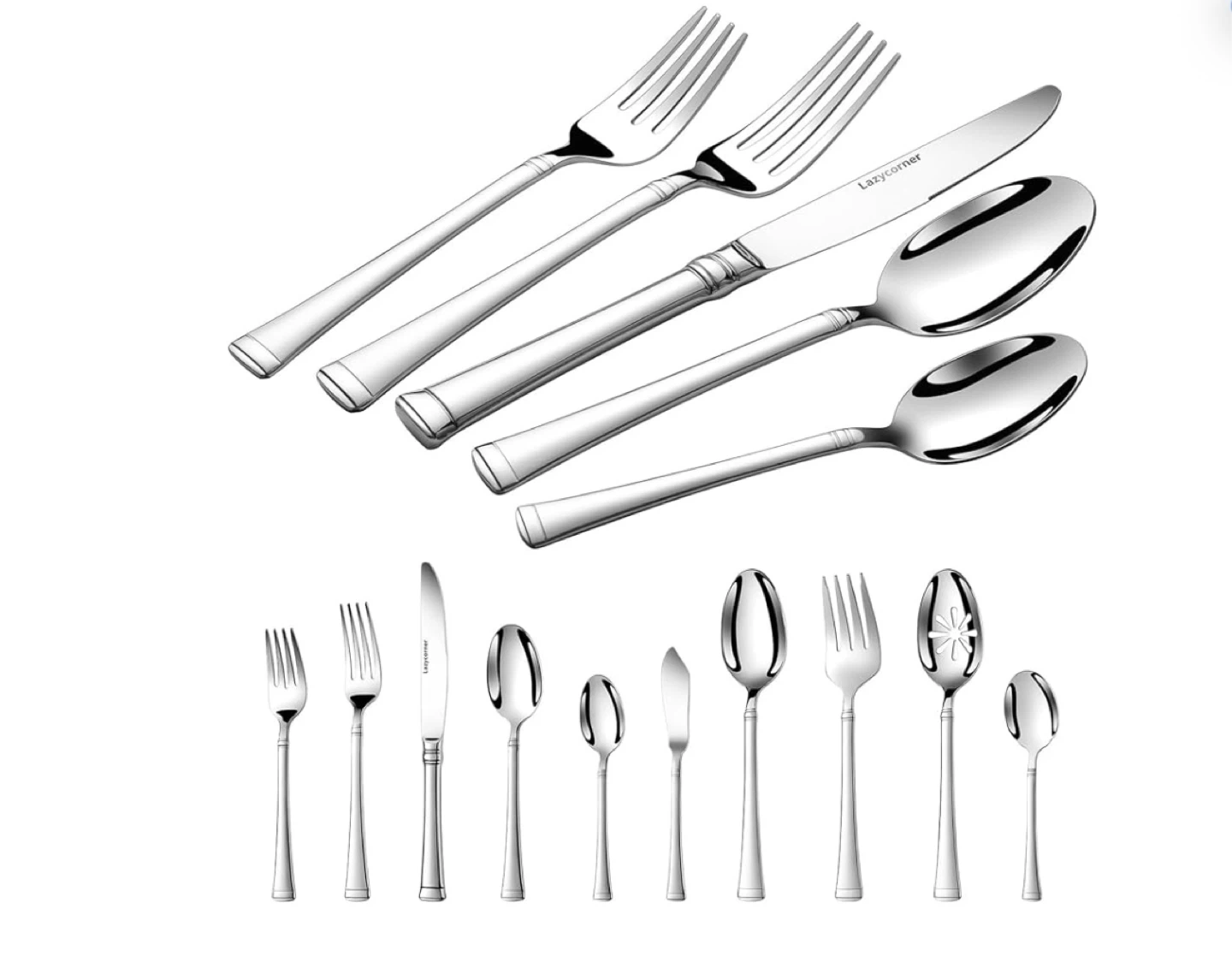 Lazy Corner 60-Piece Silverware Set + 5 Serving Set