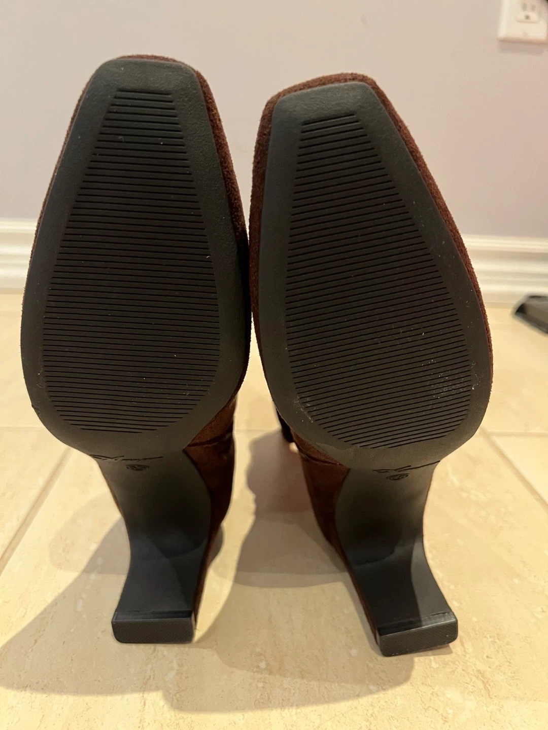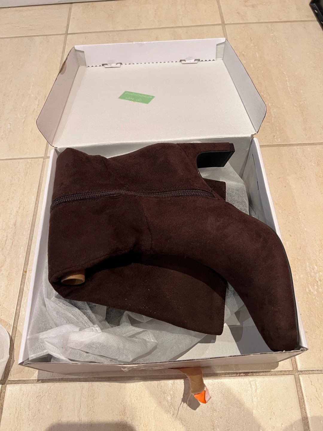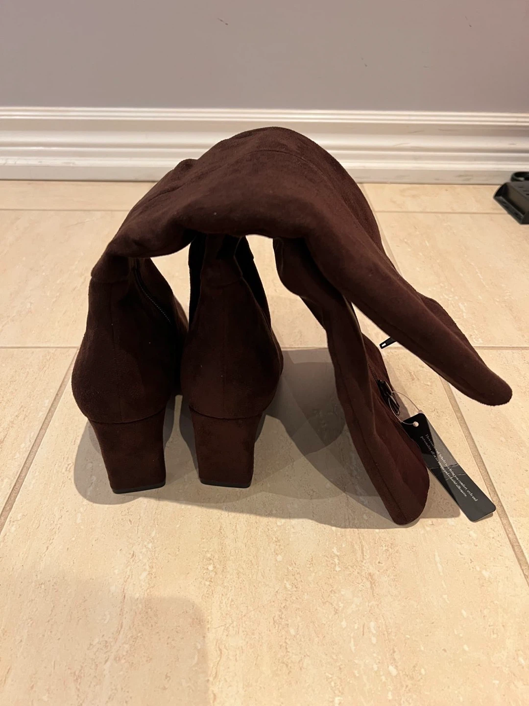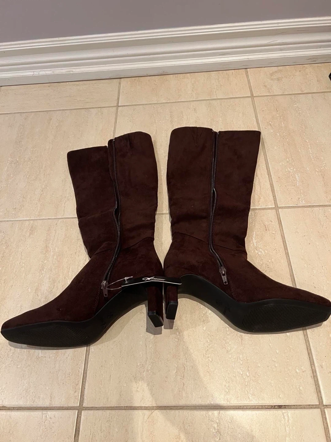 These are a pair of Amaryllis knee-high boots in a lovely brown colour. They have a heel and a zipper on the side. Perfect for fall!