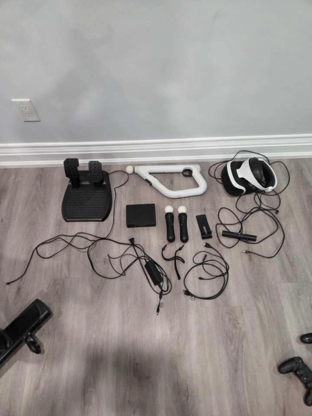 Selling a PlayStation VR headset bundle! It includes the VR headset, PlayStation Move Motion Controllers, and the PlayStation VR Aim Controller. Perfect for immersive gaming experiences!