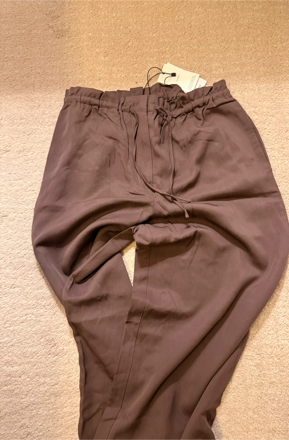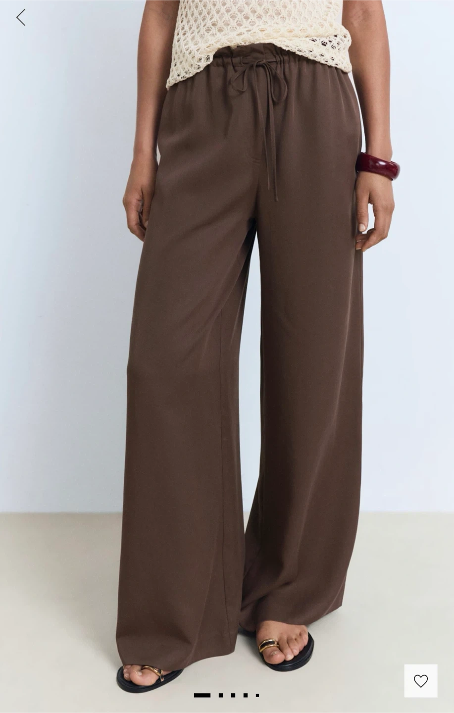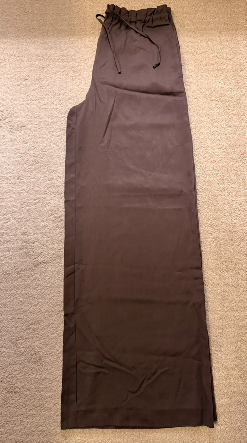 Mango Brown Wide Leg Drawstring Pants