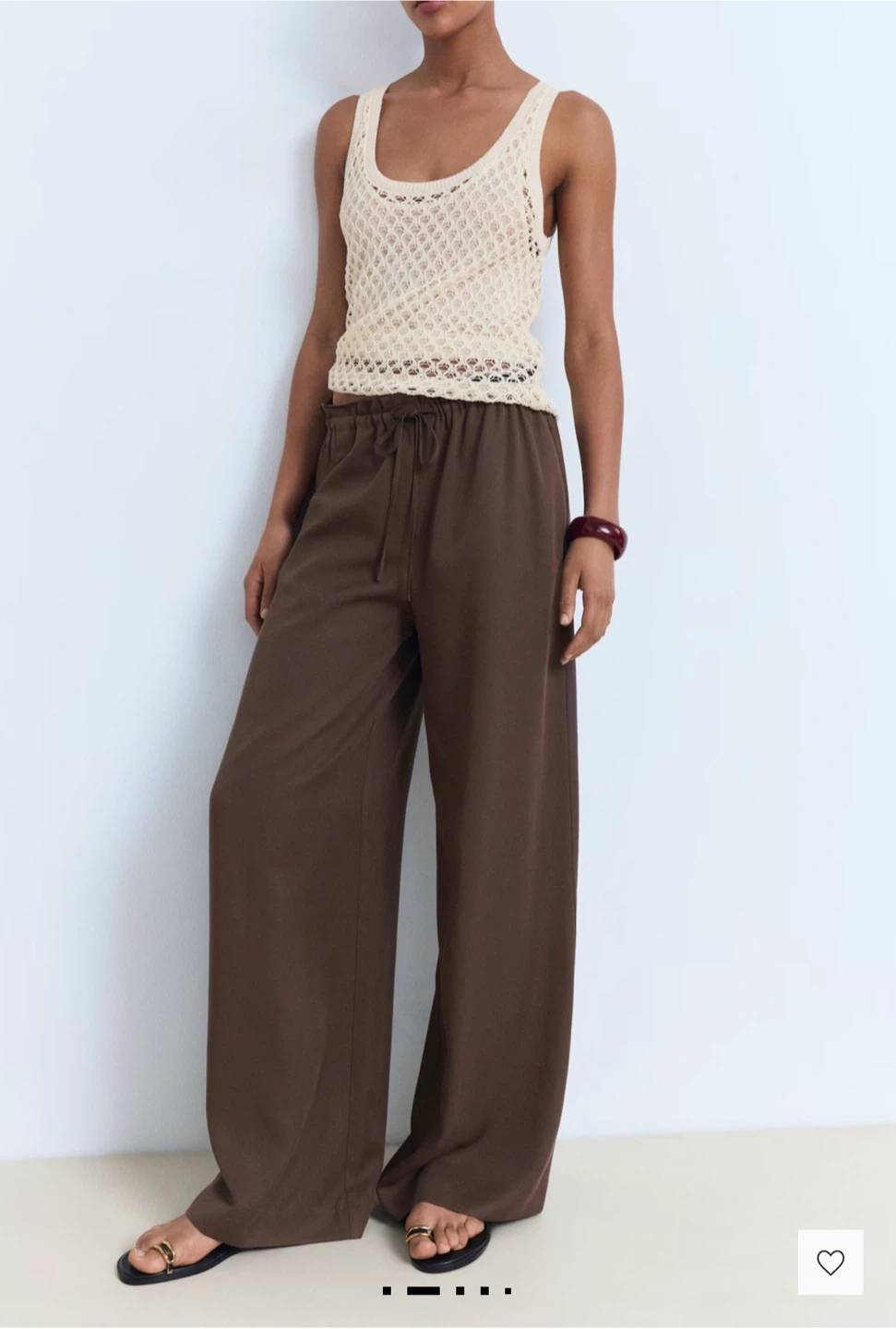 These are a pair of brown wide leg pants from Mango