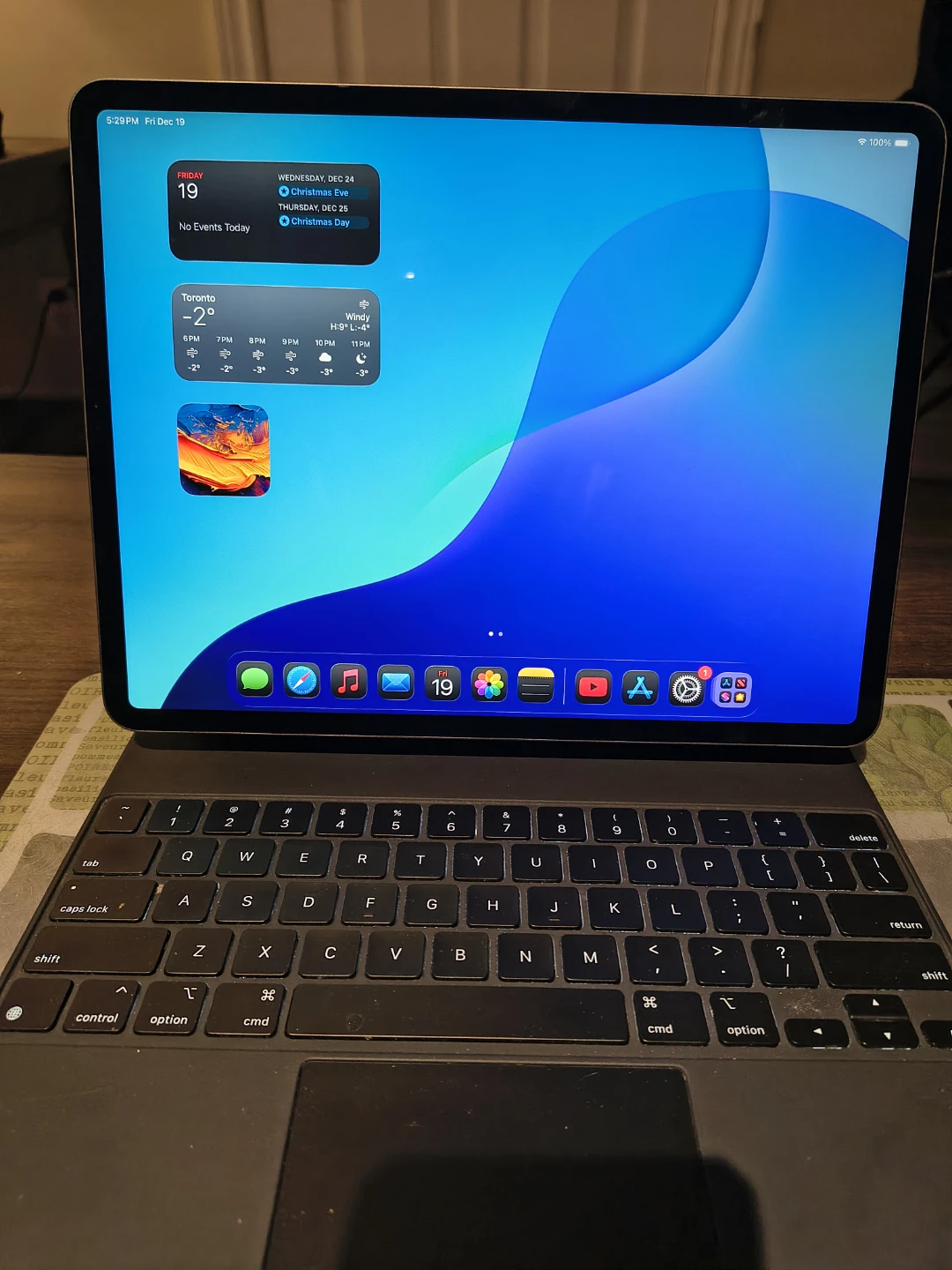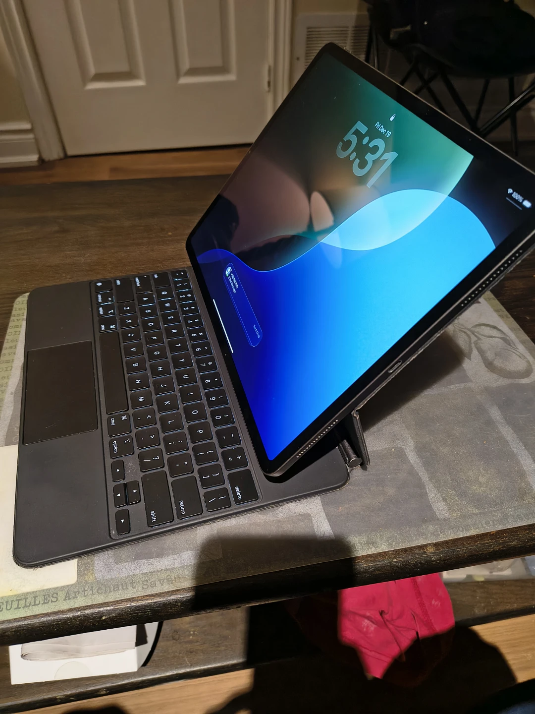 Good condition no performance issues no dents overall in good condition. Apple keyboard Inc. Asking 550 firm. Running on iPad os 26.2