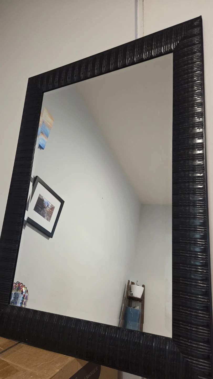 1 / 41 / 4Buy & SellBlack Framed Mirror, 32x44 inchesBlack Framed Mirror, 32x44 inches$35Selling a large black framed mirror. The frame has a textured design. It would look great in any room! 4" frame total 31½" x 43¾«ConditionLike newWHERE TO MEETmc donaldsView MapSELLERverifiedJohnBroadview N29525 reviews0 chats·1 favorites·20 viewsSEND CHAT TO SELLERHi John! I’m interested in your listing.Hi John! I’m interested in your listing.Get the Karrot app to chatSign In to chat