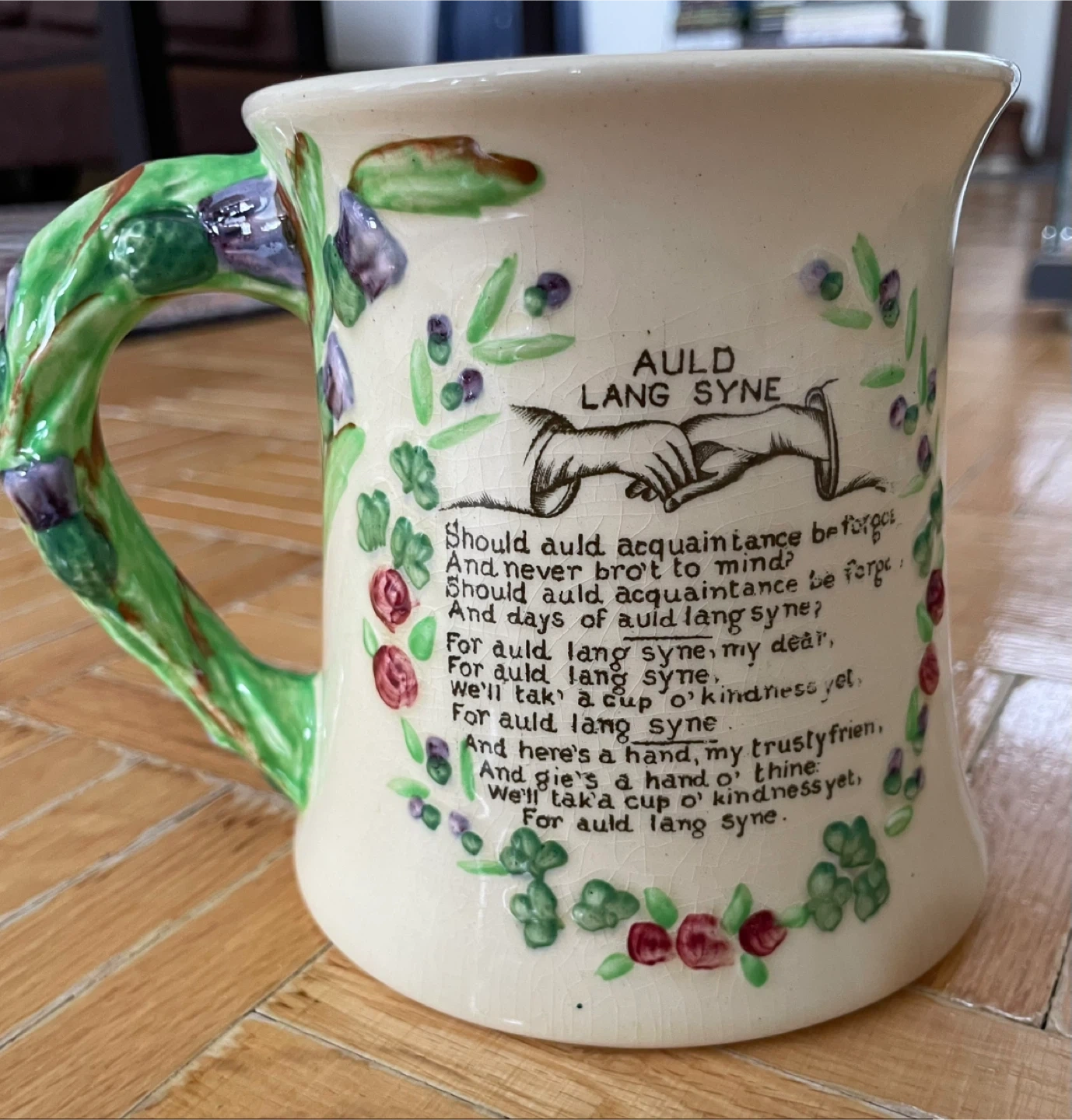 In mint condition. Antique Fielding’s English Ceramic Auld Lang Syne Mug / Music Box. Wind Up, Works Like New. Amazing For New Years.
