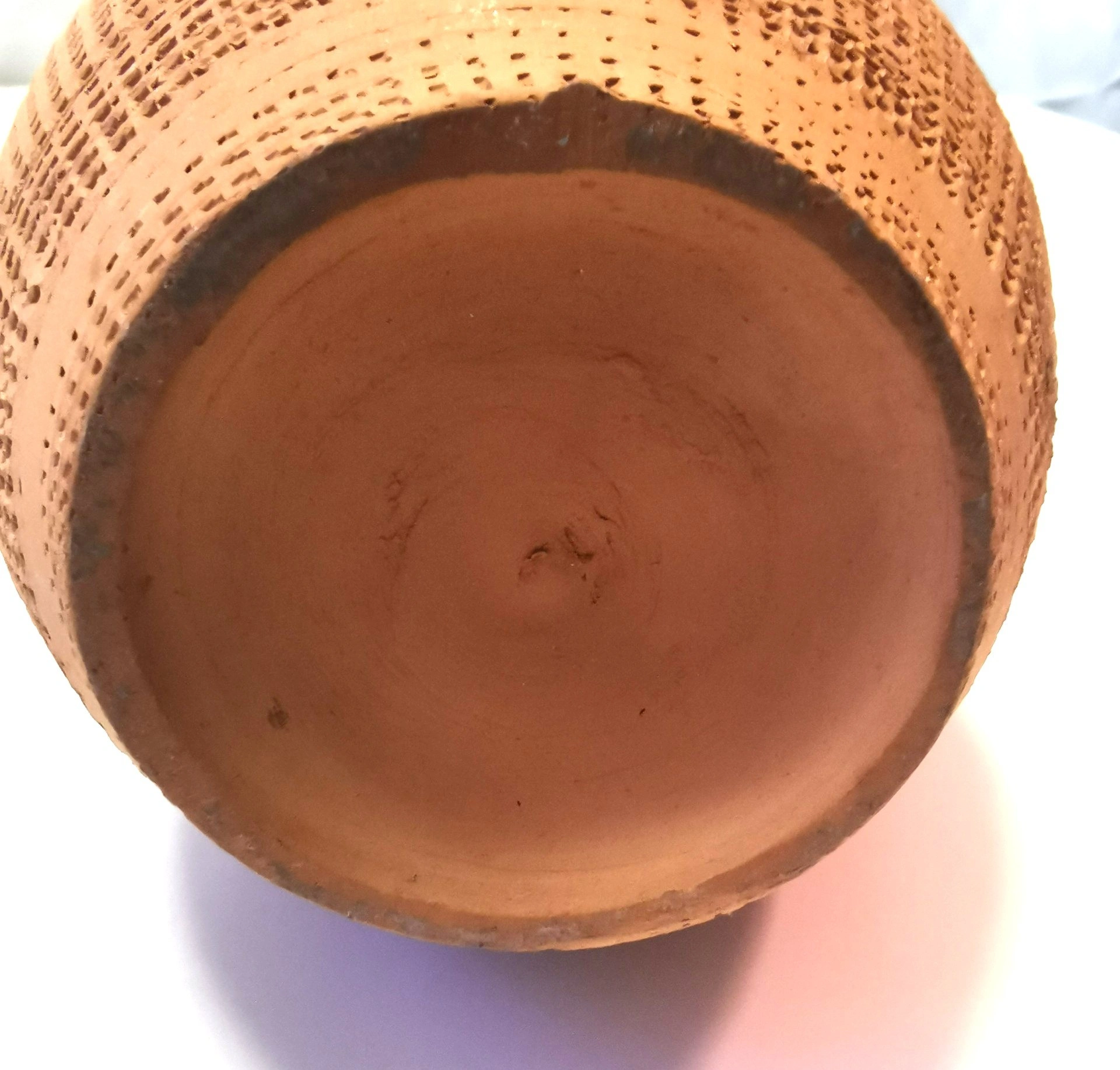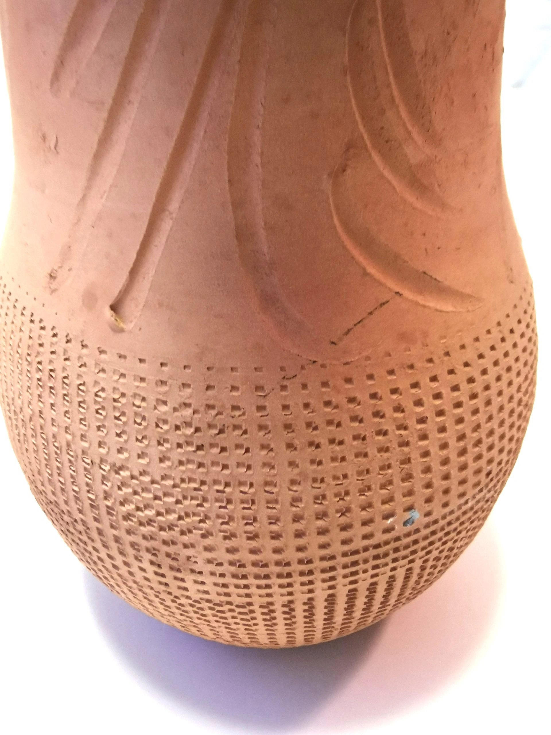 Vtg Portuguese Terracotta Pitcher Hand Carved Texture 8"