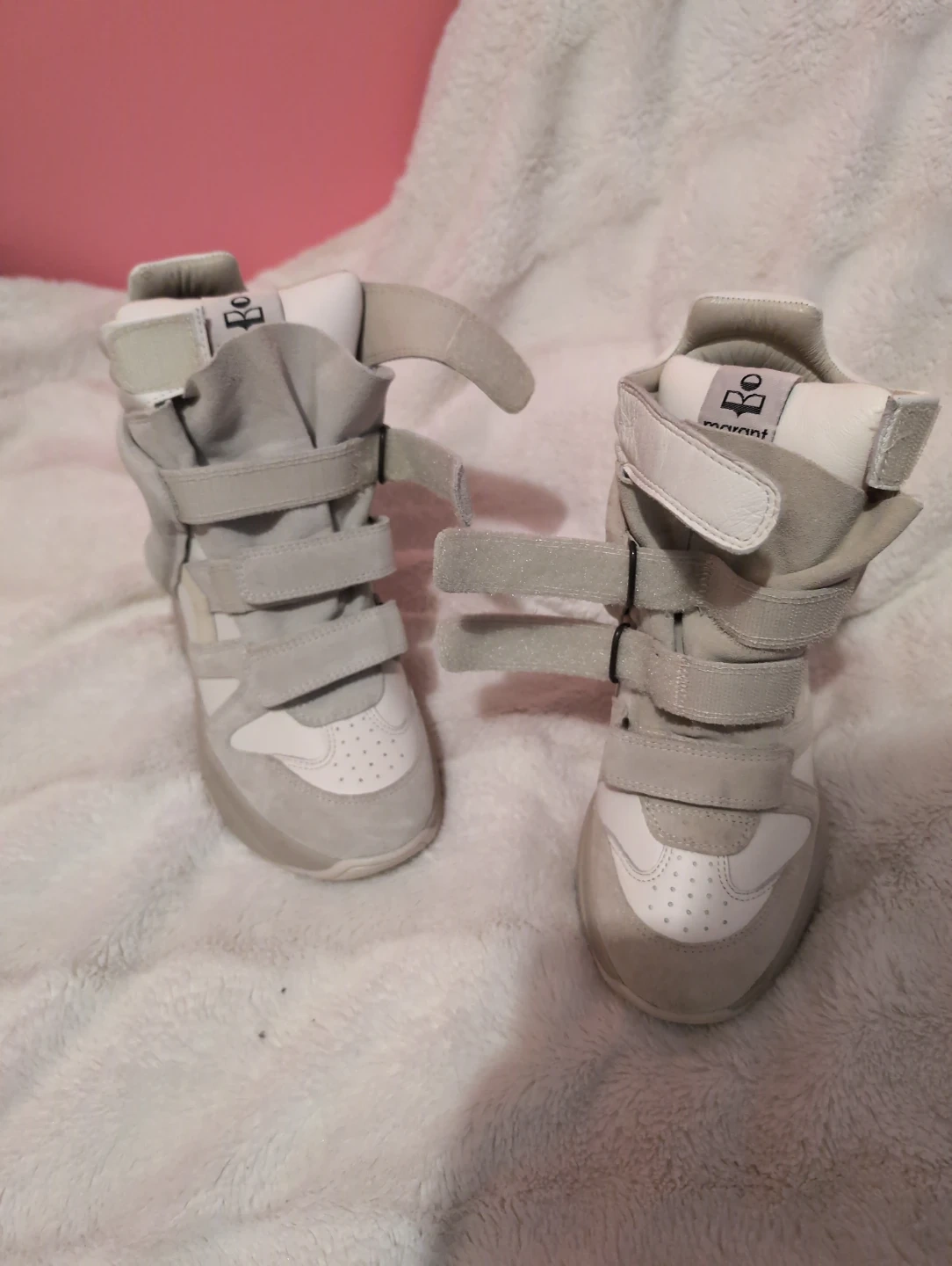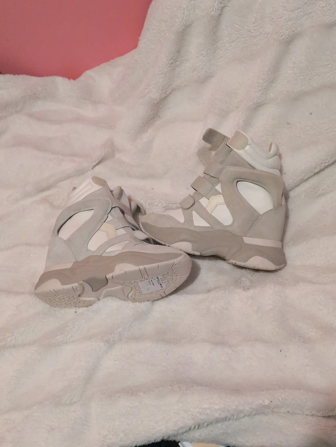 Selling a pair of Isabel Marant wedge sneakers in a stylish white and grey colourway! These shoes are in great condition and ready for a new owner. Perfect for adding a bit of height and style to your everyday look. Never been worn. *As-is*
