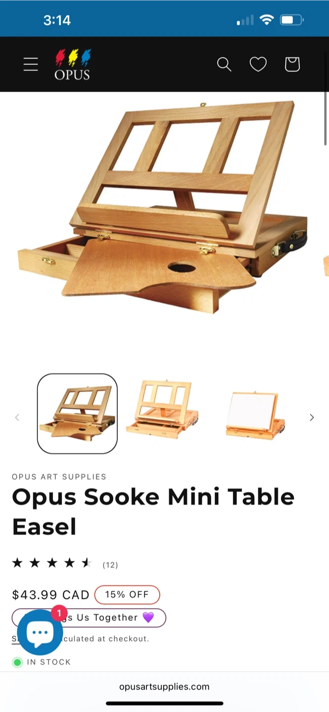 Here's an Opus Sooke Mini Table Easel! It's great for artists who need a compact and portable workspace. Originally bought for $43.99 CAD