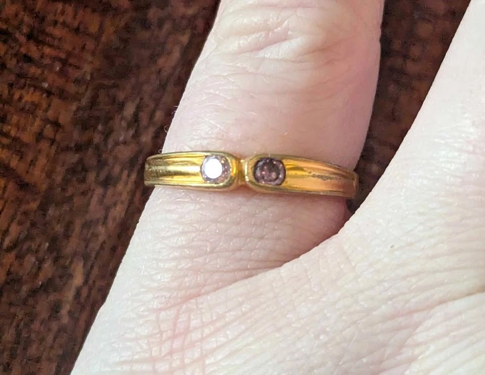 Vintage 18K Gold Plated Ring with Dual Pink and Purple Stones -