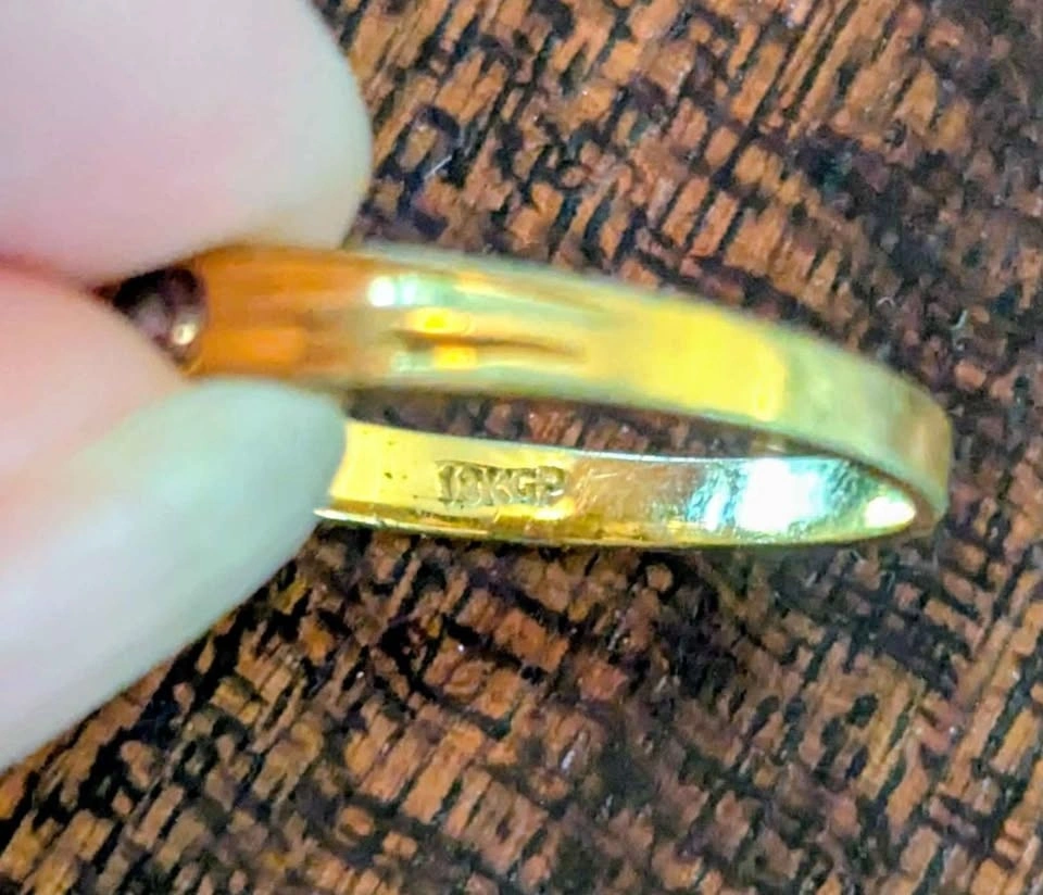 Beautiful vintage-style ring, stamped with 'T' and '18KGP' (18 karat gold plated).