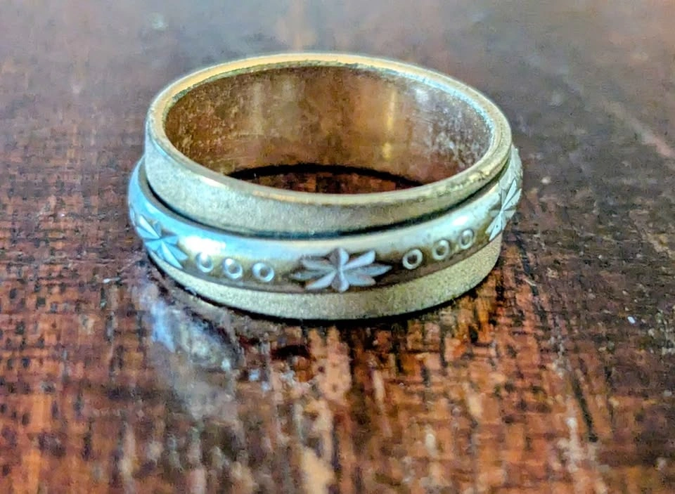 Vintage Style Meditation Ring - Gold & Silver Tones - Size: 6