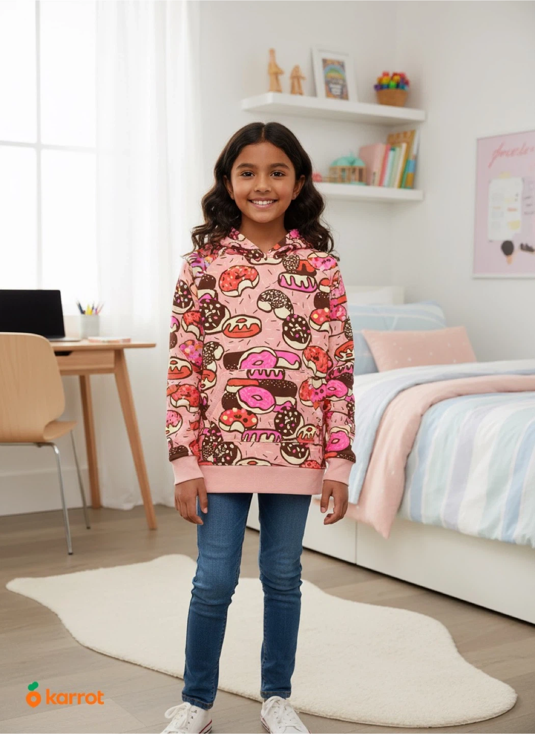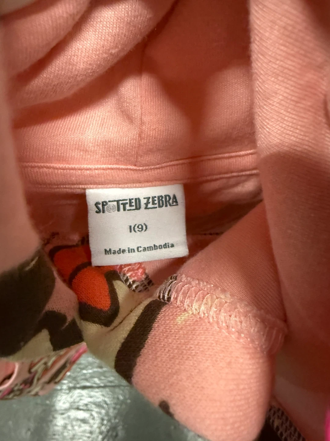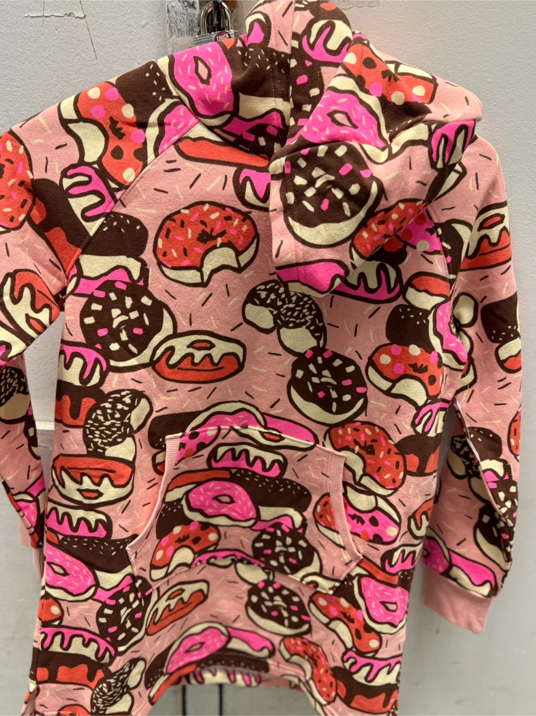 Here's a super cute Spotted Zebra hoodie with a fun donut pattern! It's a size 1(9) and in great condition. Perfect for keeping your little one cozy and stylish!