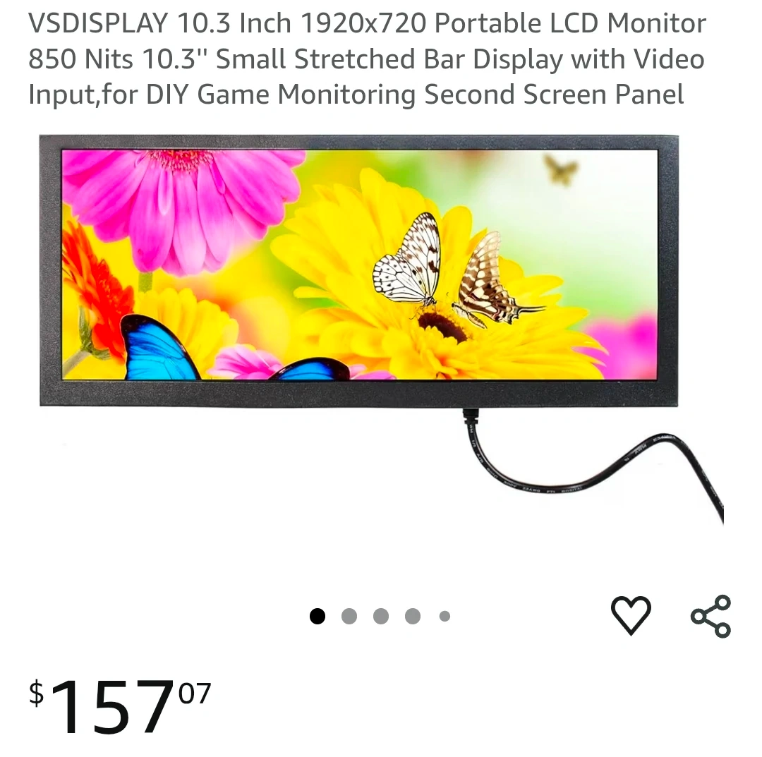 ☆VSDISPLAY 10.3 Inch 1920x720 Portable LCD Monitor 850 Nits 10.3'' Small Stretched Bar Display with Video Input,for DIY Game Monitoring Second Screen Panel