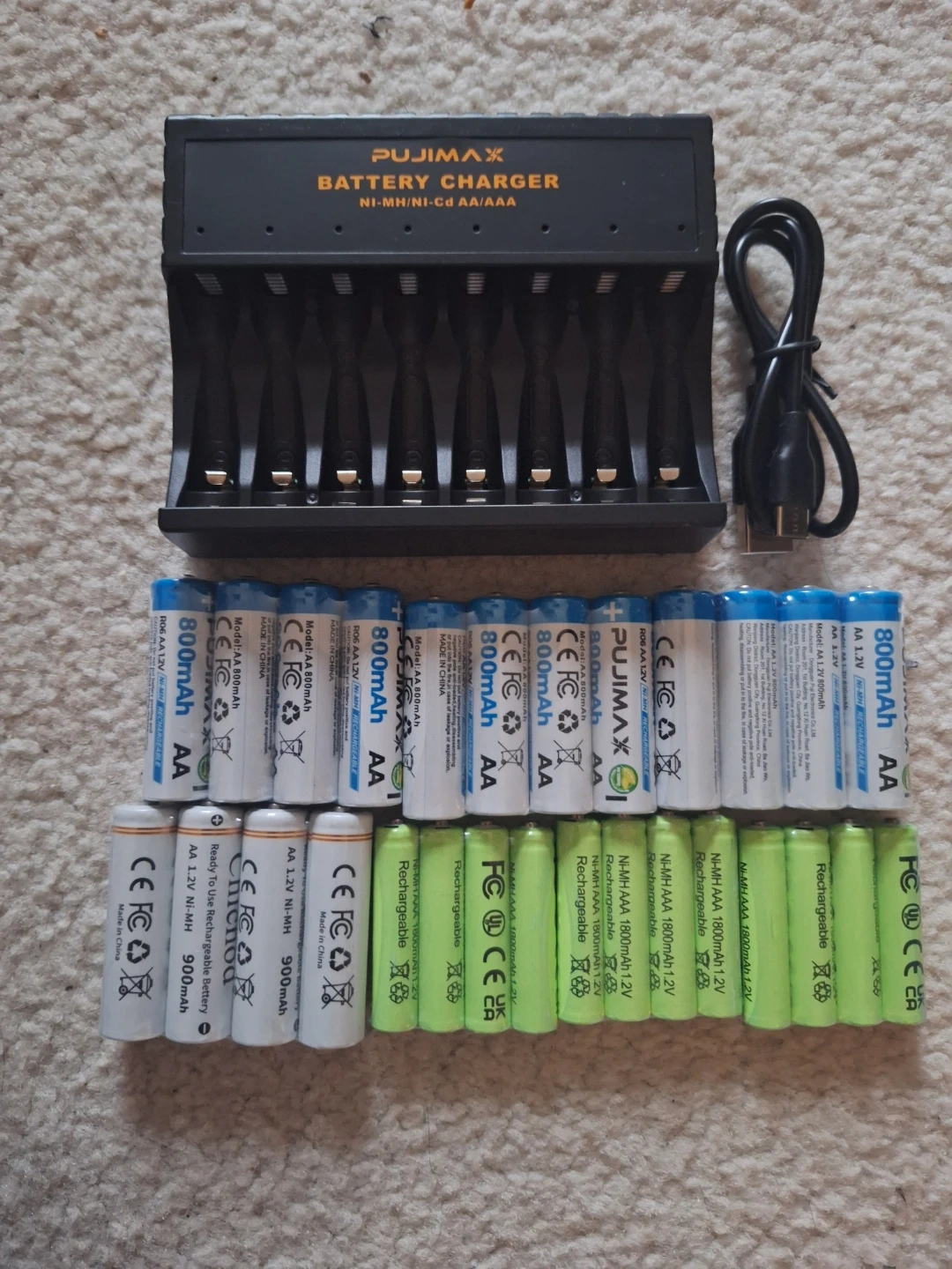 Selling a collection of rechargeable batteries and an 8-slot charger! Includes: