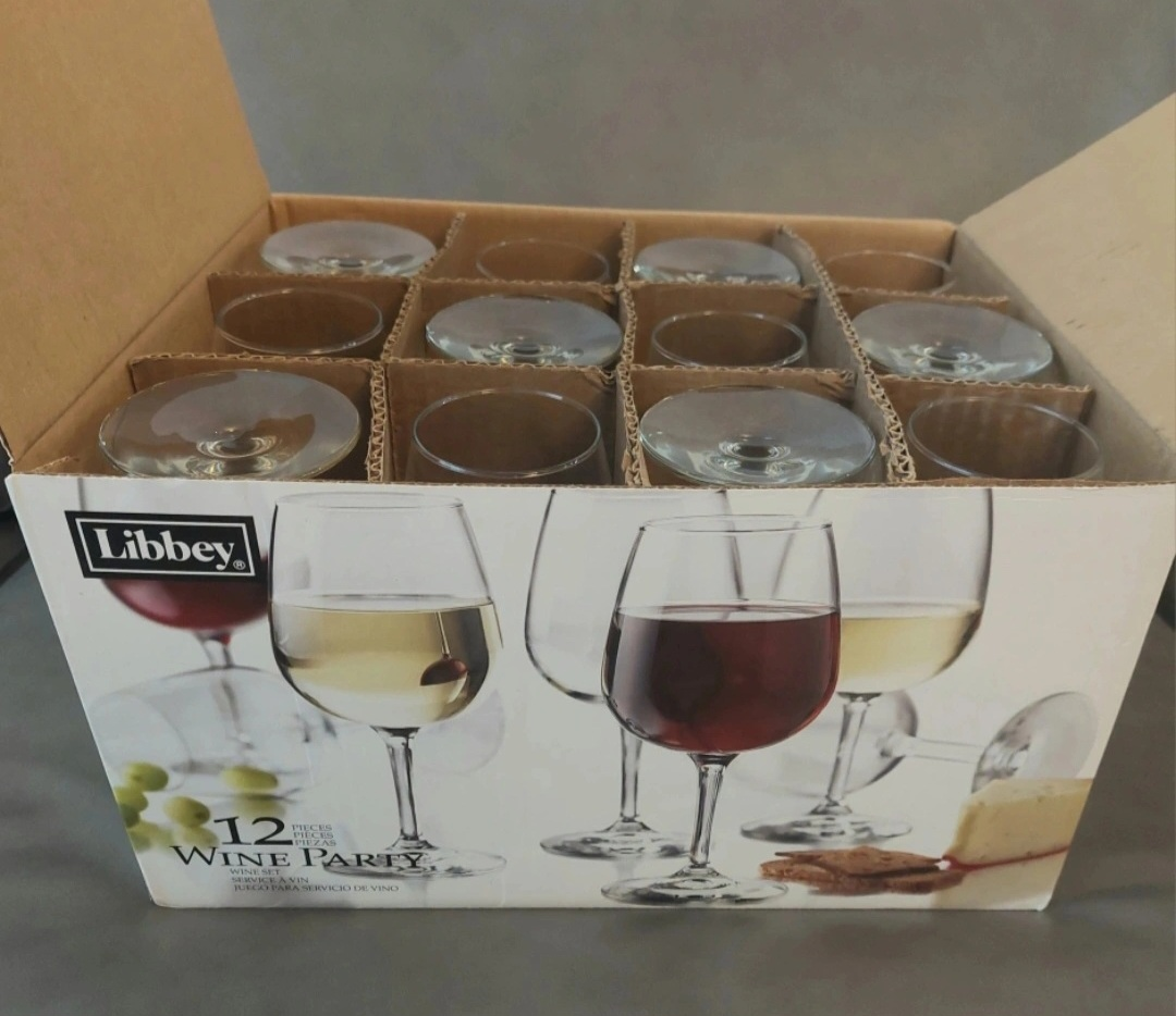 - Set of 12 wine glasses, perfect for your next party! Utilized once.