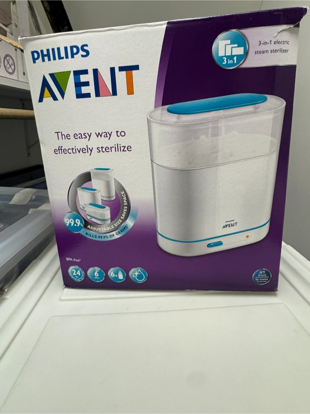 A Philips Avent 3-in-1 electric steam sterilizer! It's a super easy way to effectively sterilize baby bottles and other items. It's in great condition and comes in the original box