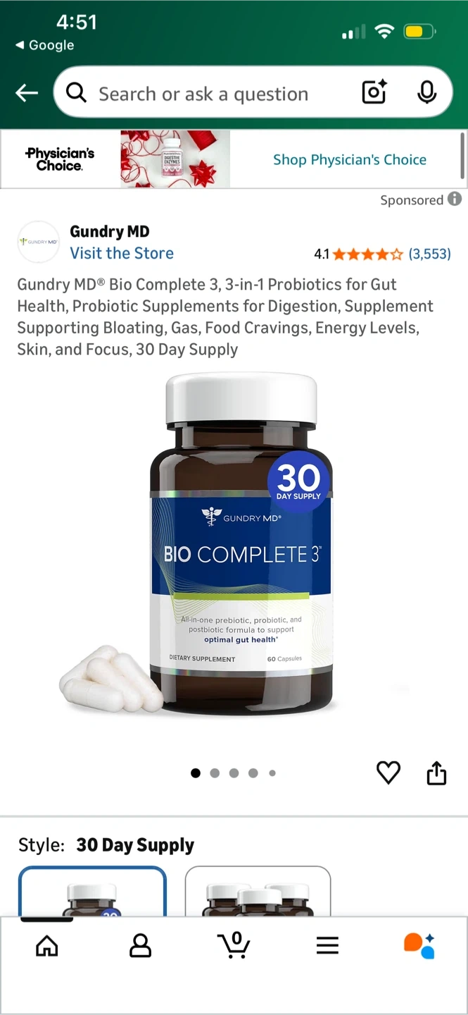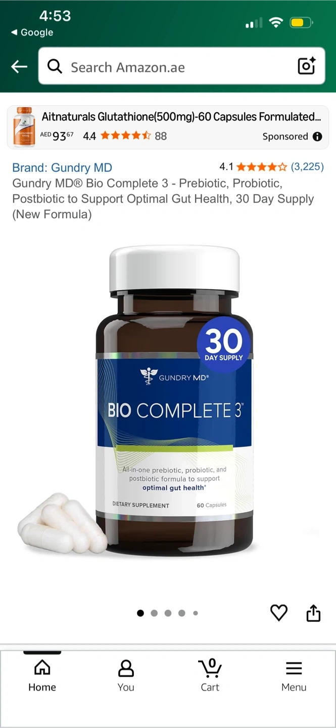 Selling two bottles of Gundry MD supplements. One is Total Restore (90 capsules) and the other is Bio Complete 3 (60 capsules). They are designed to support a healthy gut lining with a blend of powerful ingredients and all-in-one prebiotics, probiotics, and postbiotics