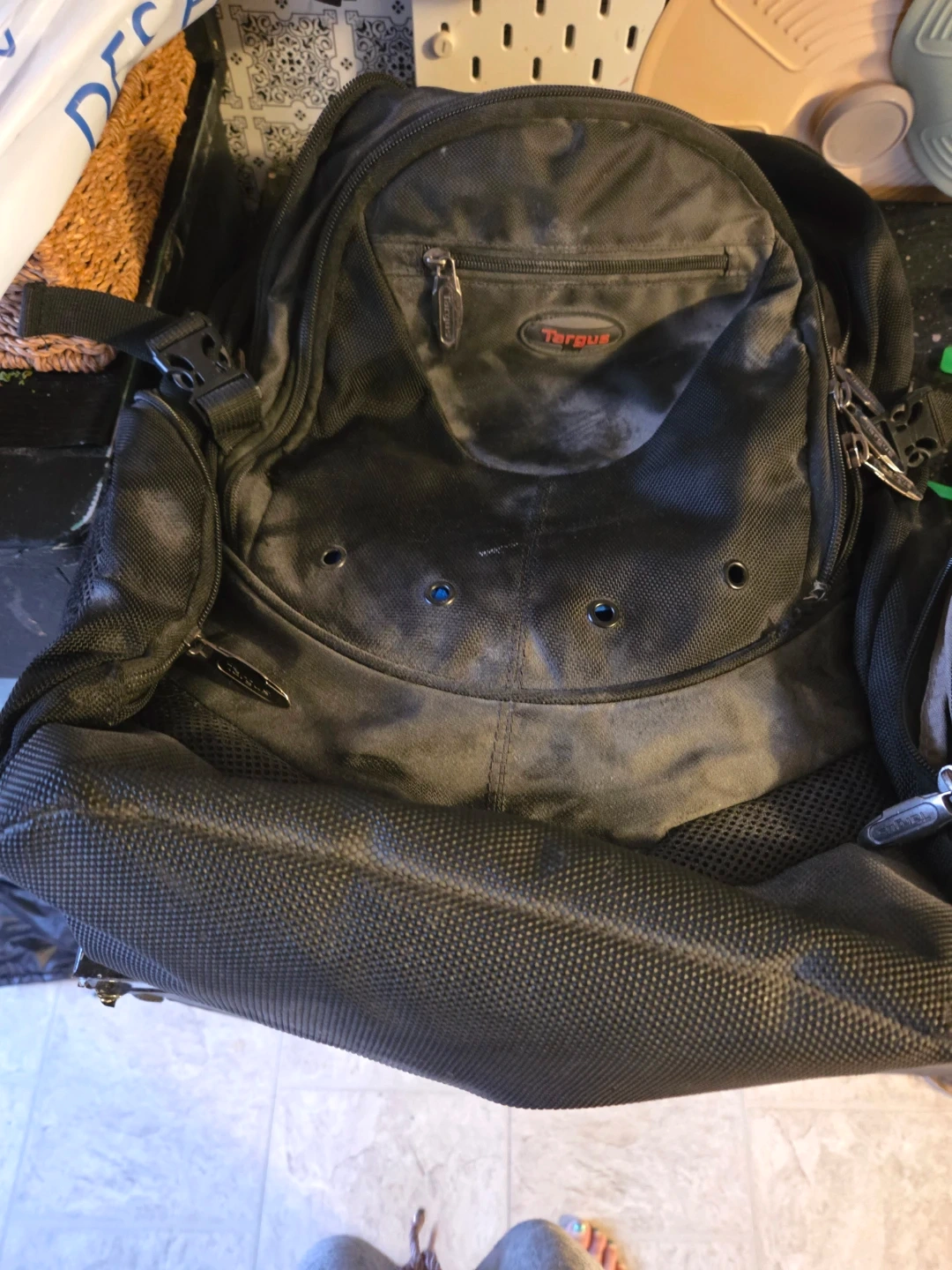 Selling a black Targus backpack. It's in good condition and ready for a new adventure, whether it's heading to school, work, or travelling! It has multiple compartments, so it's great for organizing your belongings