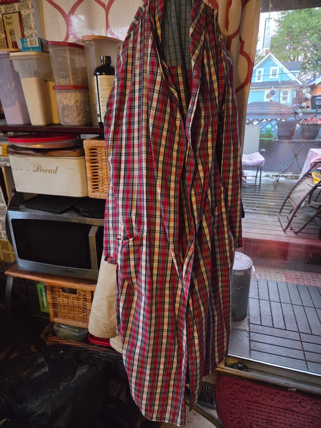 Here's a cozy Polo Ralph Lauren robe in a classic plaid pattern! It's made from 100% cotton and is a size S/M. Perfect for lounging around the house on chilly evenings