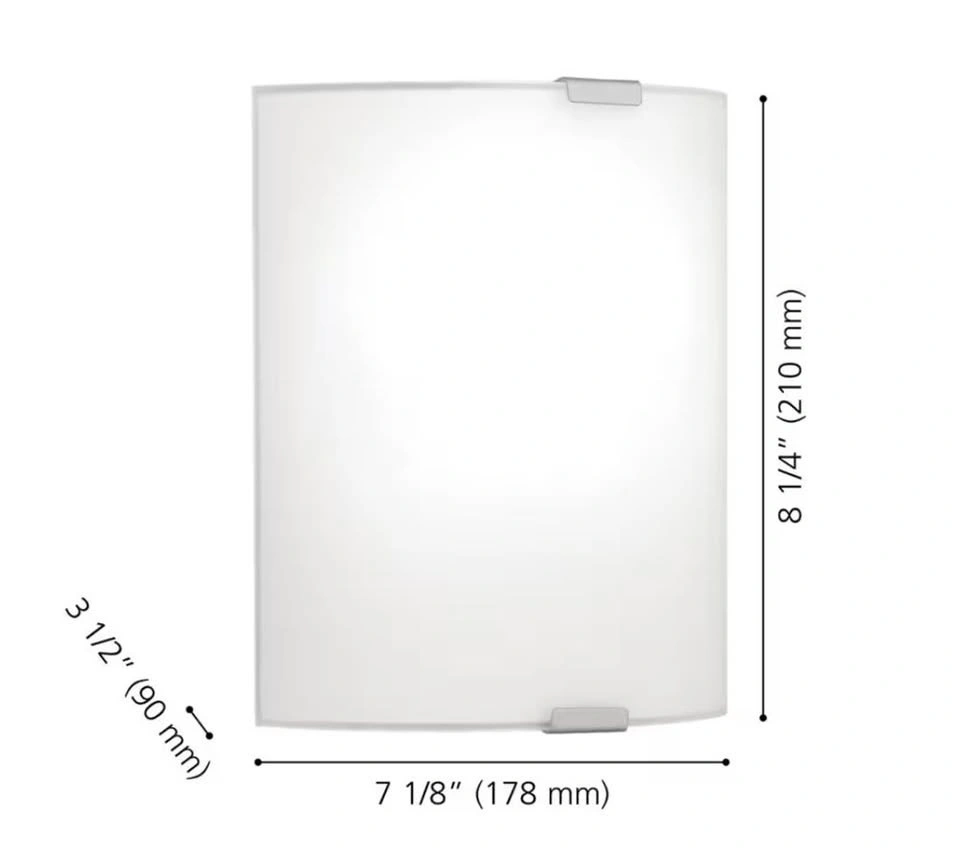 Illuminate your home with the exquisite, curved design of the Grafik. This ADA compliant wall light can be mounted vertically, horizontally or on the ceiling no matter your styling desire. The satin glass emits an abundance of light that is sure to brighten your home with an opulent glow. Assembled Weight (in lbs): 2.006 Pounds. Assembled Depth (in inches): 3.5 inch. Assembled Width (in inches): 7.13 inch. Assembled Height (in inches): 8.25 inch. Compatible Bulb Type: No Bulb Included. Brightness (Lumens): Bulb Not Included. Bulb Base Code: E26. Bulb Shape Code: A19. Power Source: Hardwired. Style: Classic. Fixture Colour/Finish Swatch: Nickel. Shade Colour/ Finish: Nickel. Fixture Colour/Finish.: Nickel. Light Direction: Ambient. Shade Material: Glass. Number of Lights Required: 1. Lighting Features: Shaded. Chrome Finish with Satin Glass Shade. Uses 1 x 100W max. Medium Base Bulb (Sold Separately). Can be installed as either a ceiling or wall light.