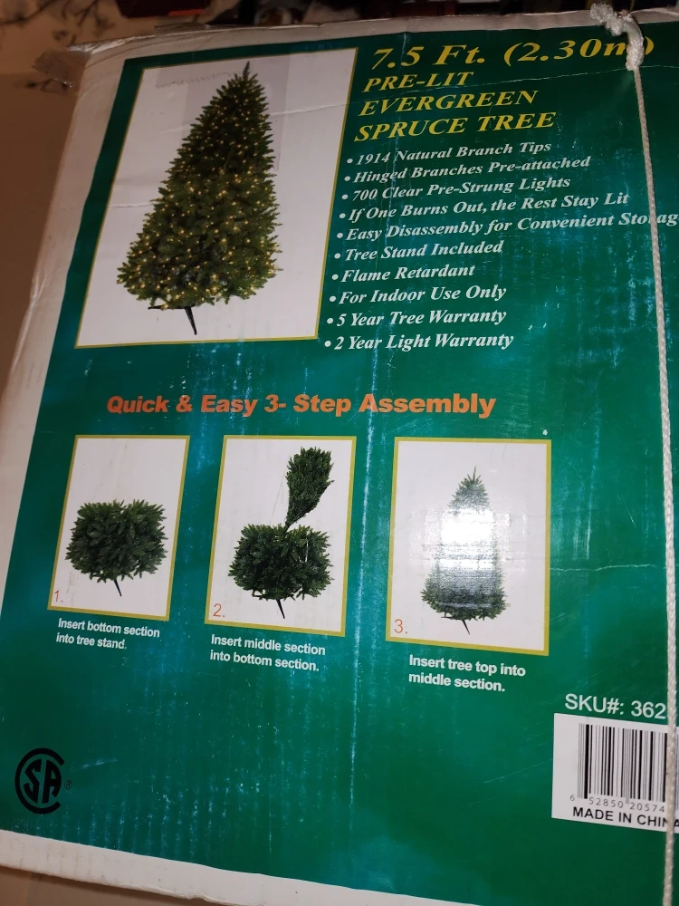 7.5 Pre-lit Evergreen Spruce Christmas Tree EUC