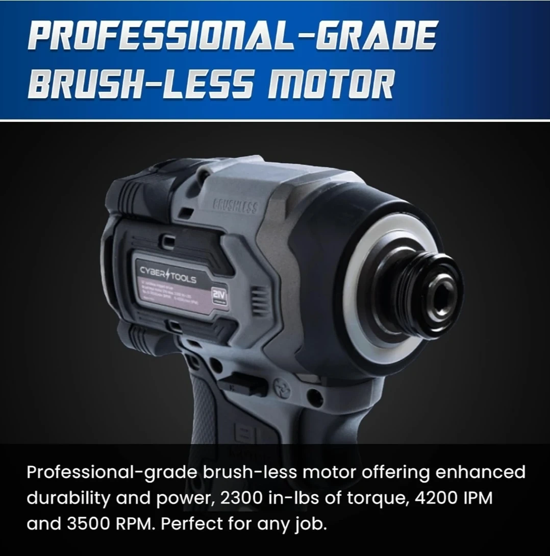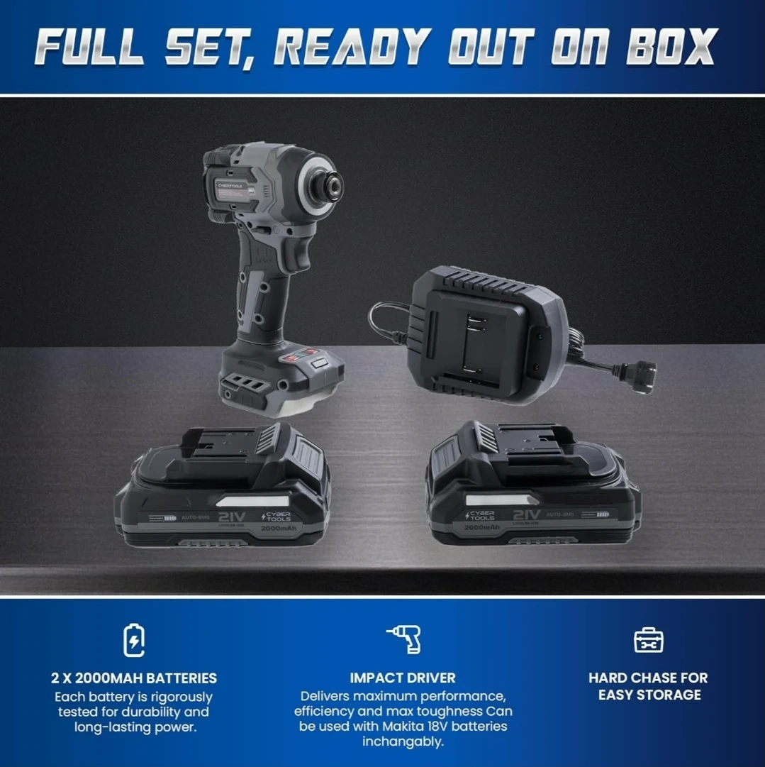 Cyber Tools 21V Brushless Impact Driver Kit, 2 Battery + Charger