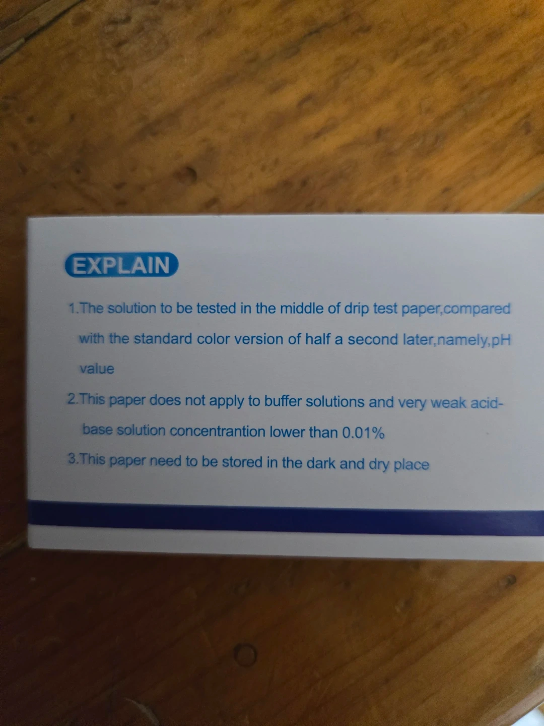 Here are some universal indicator paper strips for testing pH levels. The box includes instructions on how to use the paper for drip tests. Great for science experiments or aquarium water testing!