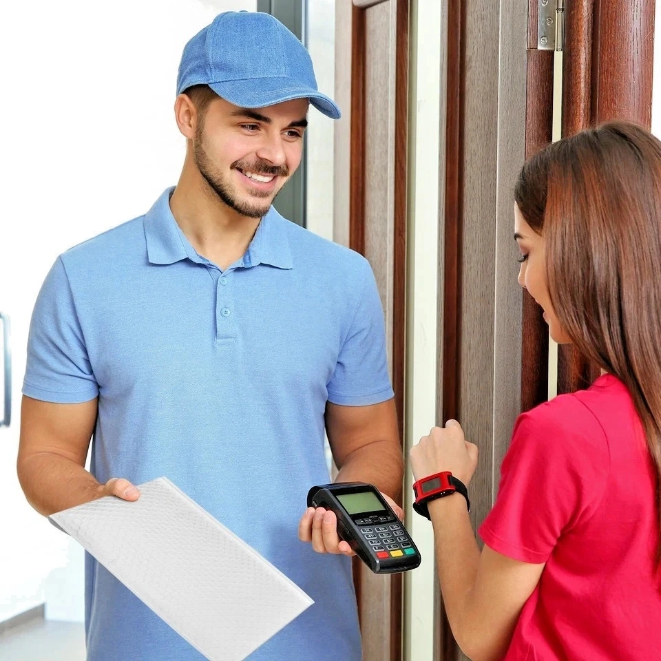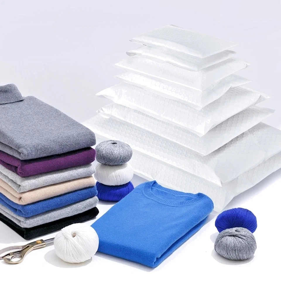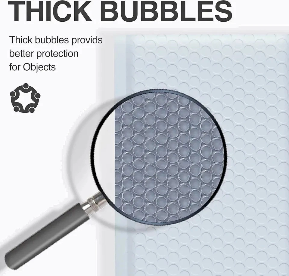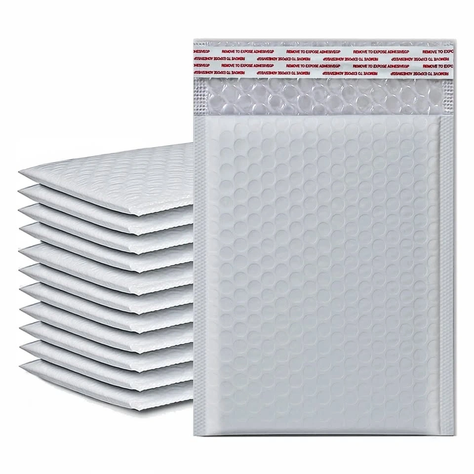 Material: Polyethylene (plastic) bubble mailer with an air bubble cushioning layer inside.