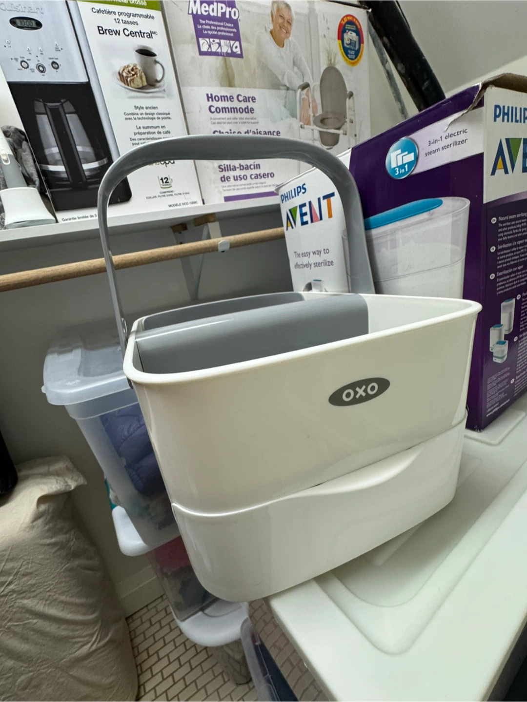 Selling an like new barely used but fabulous OXO Tot Diaper Caddy! It's perfect for keeping all your baby essentials organized and within reach. The caddy is white and grey and has a convenient handle for easy transport around the house. Great for new parents! Ready to go to new home.