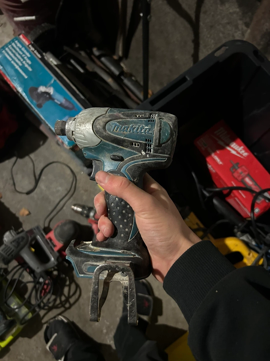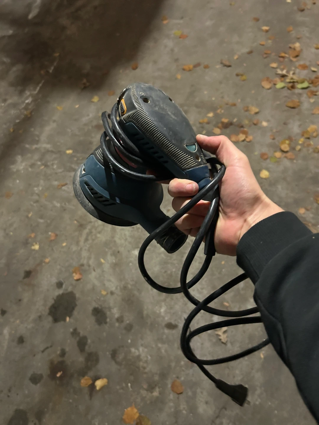 Selling a variety of used power tools. Includes a Bosch sander, a Makita drill, a Milwaukee cutter, and a DeWalt saw. All tools show signs of wear and use, but are still functional.