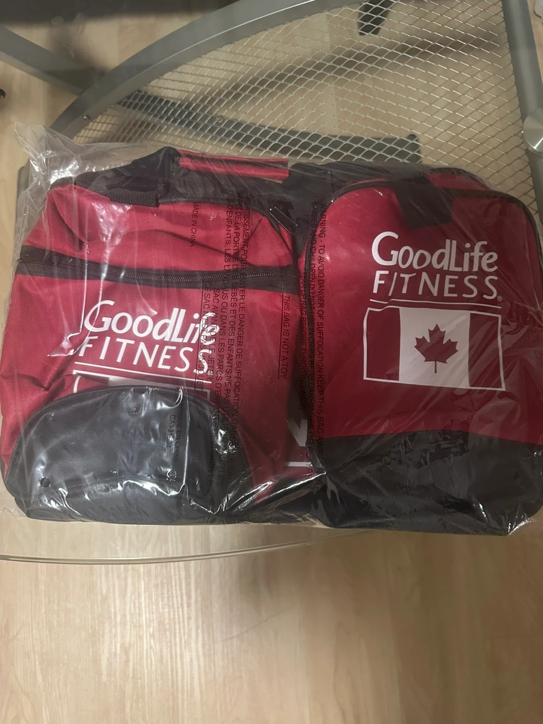 Brand new GoodLife Fitness gym bag, still in the original packaging! Perfect for carrying your workout gear to the gym or for other activities. Features the GoodLife Fitness logo with a Canadian maple leaf.