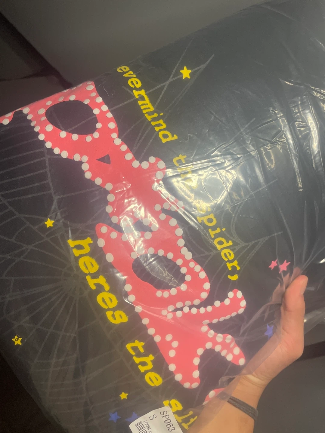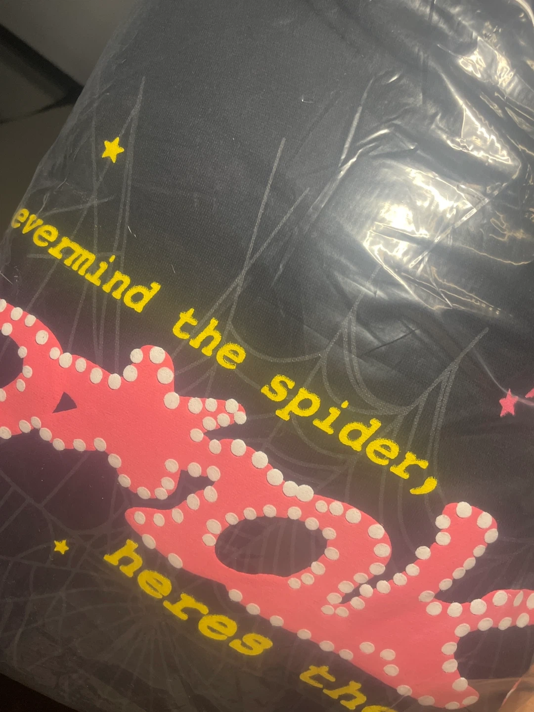 Selling a brand new, sealed SP0631-S hoodie The design features the text "evermind the spider, here's the". It's a size small!