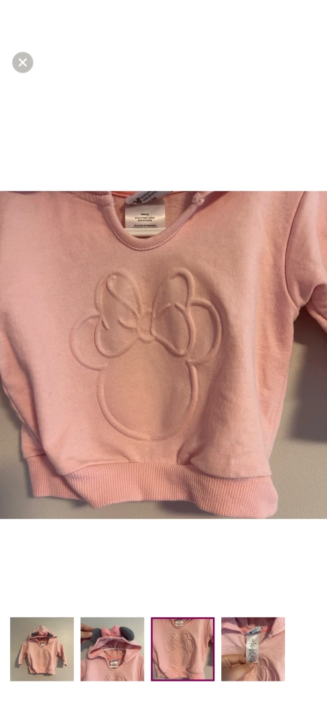 Disney brand. Pullover hoodie. Pink with Minnie Mouse ears in the hood. Size 3m. Brand new condition