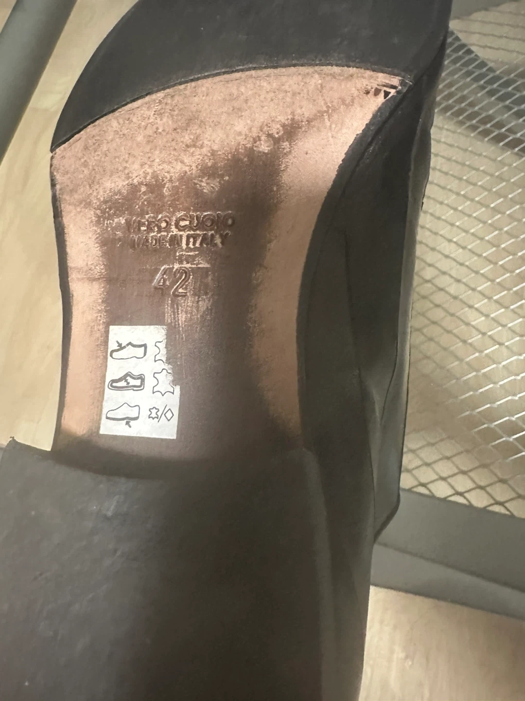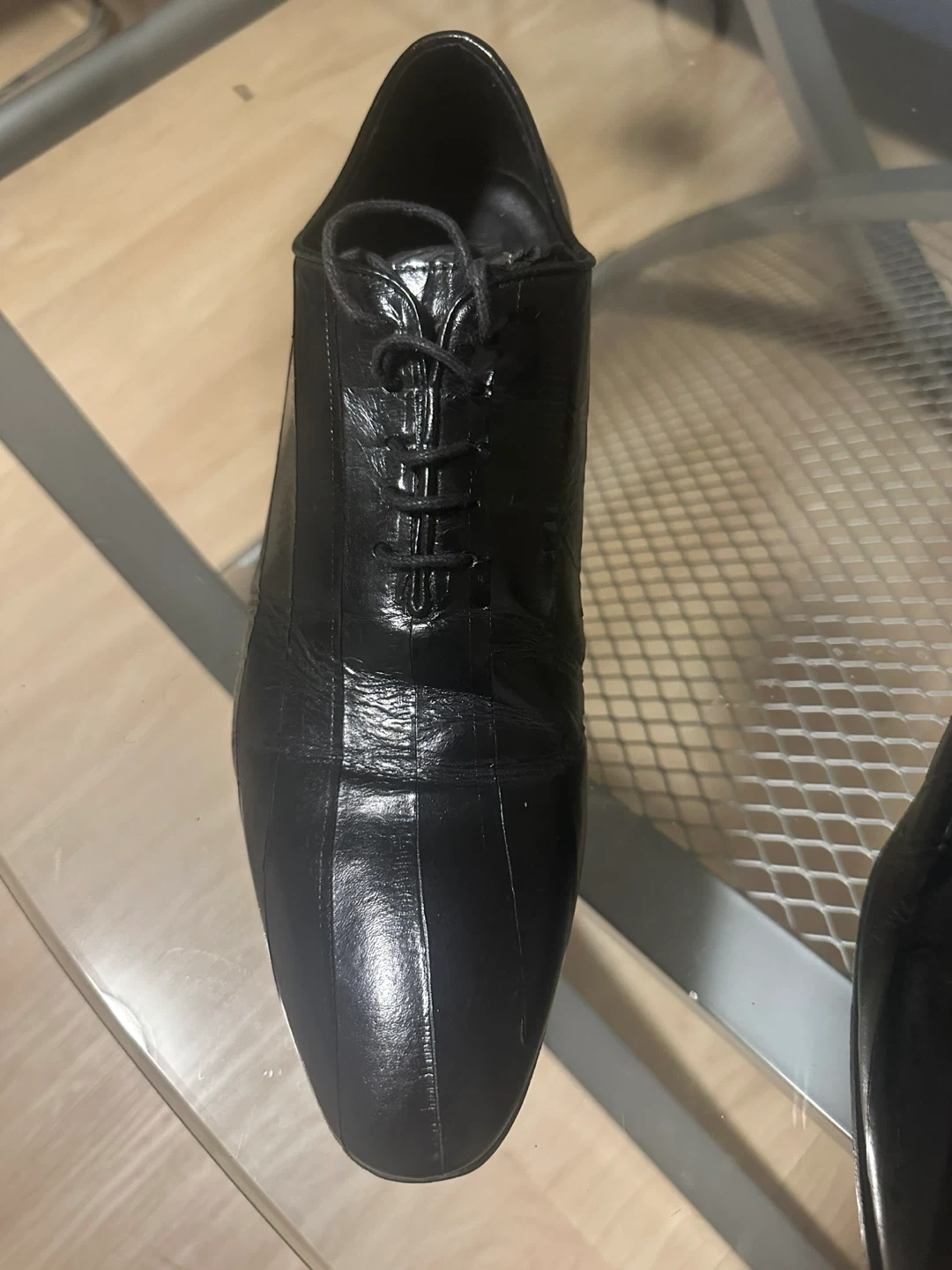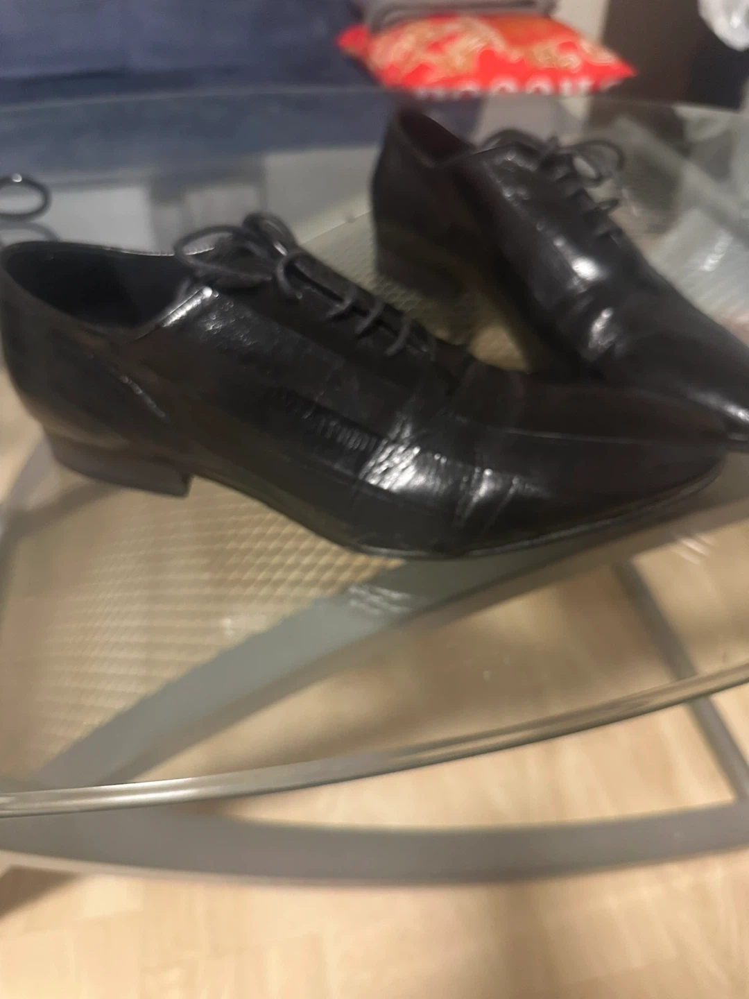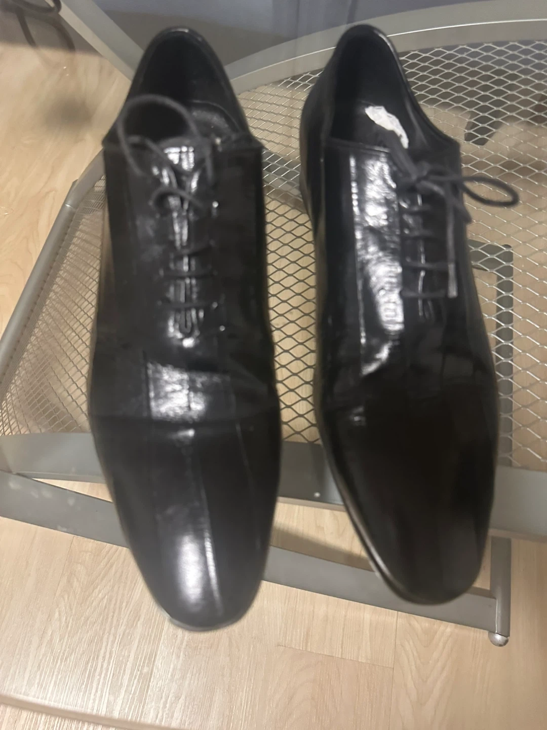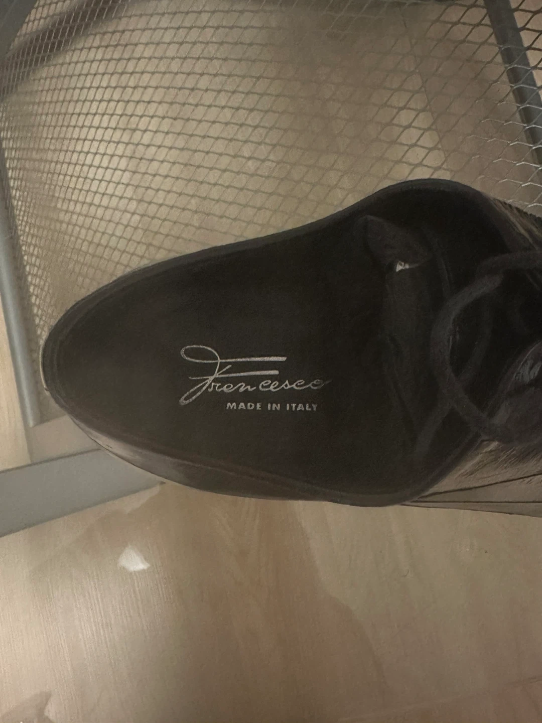 Selling a pair of Francesco dress shoes in black leather. They are size 42, made in Italy. Signs of wear on the soles, but overall in good condition!