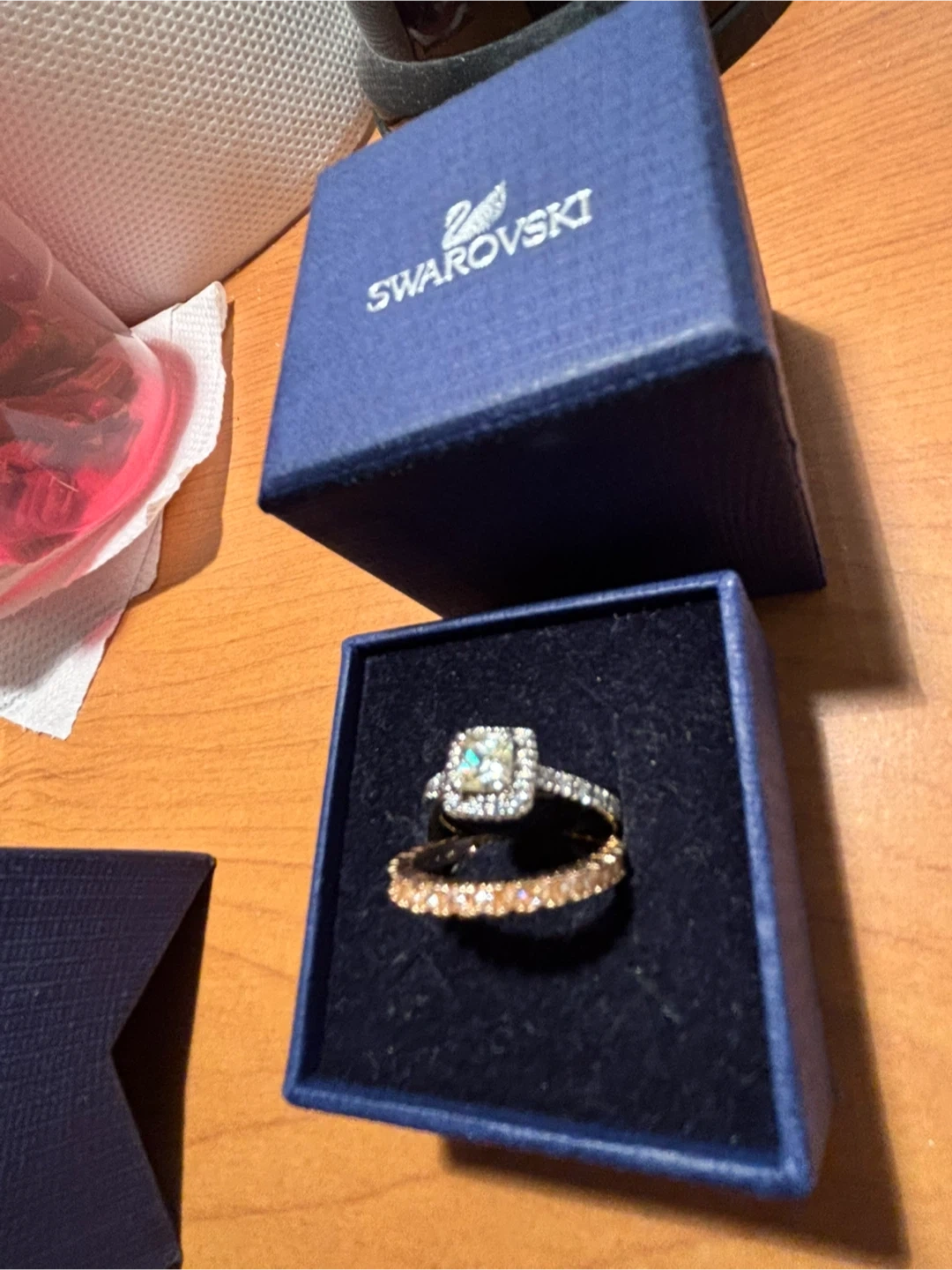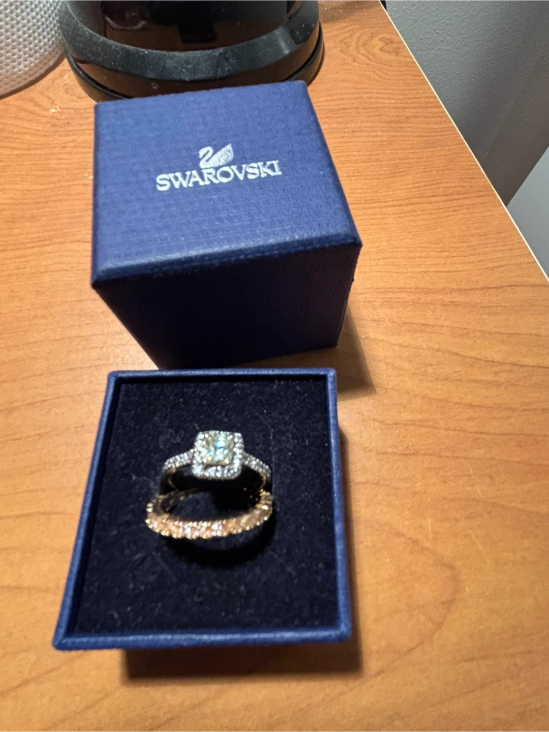 Selling a beautiful Swarovski ring set! It comes with the original box, perfect for gifting or keeping it safe. The rings are in great condition and ready to add some sparkle to your collection