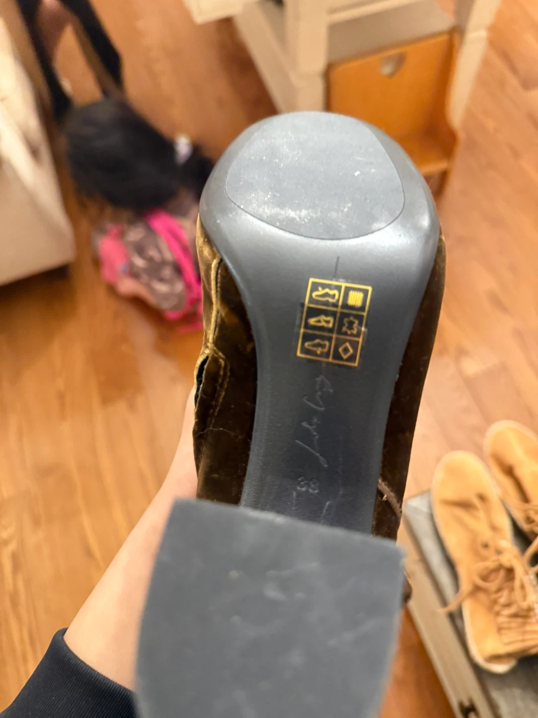 Selling a pair of Loeffler Randall velvet booties in a beautiful olive green colour. They are a size 36. Perfect for adding a touch of elegance to any outfit!