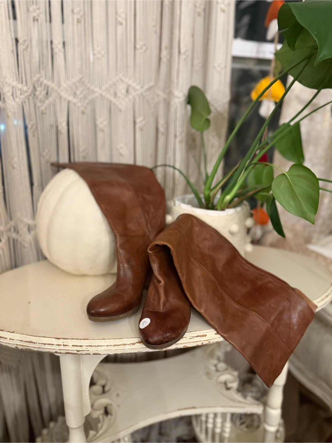 Selling a pair of Vic Matié knee-high boots in brown leather. These are a size 37, which is equivalent to a US size 7. They're pre-owned but still have lots of life left!