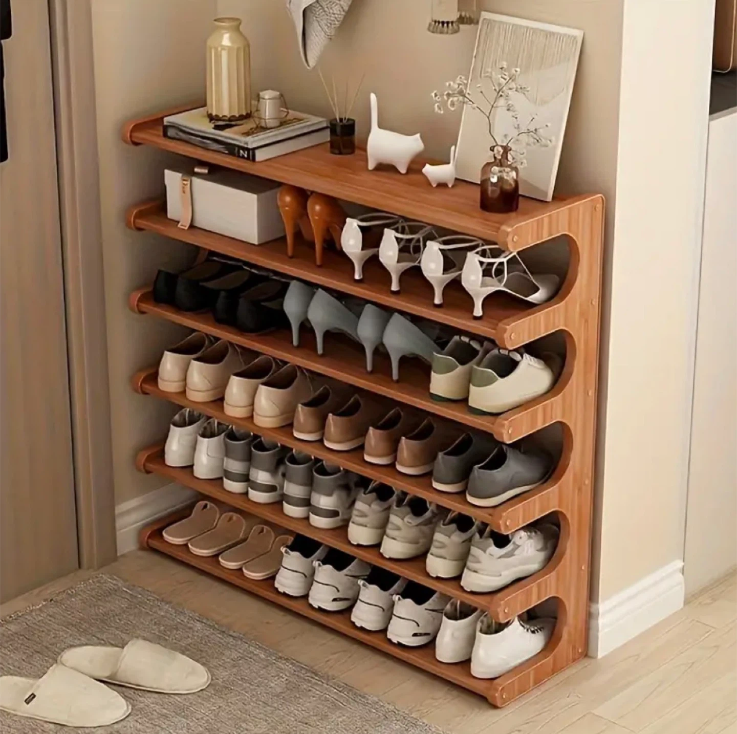 Wooden bamboo Shoe Rack - 6 Tier (BRAND NEW IN BOX)