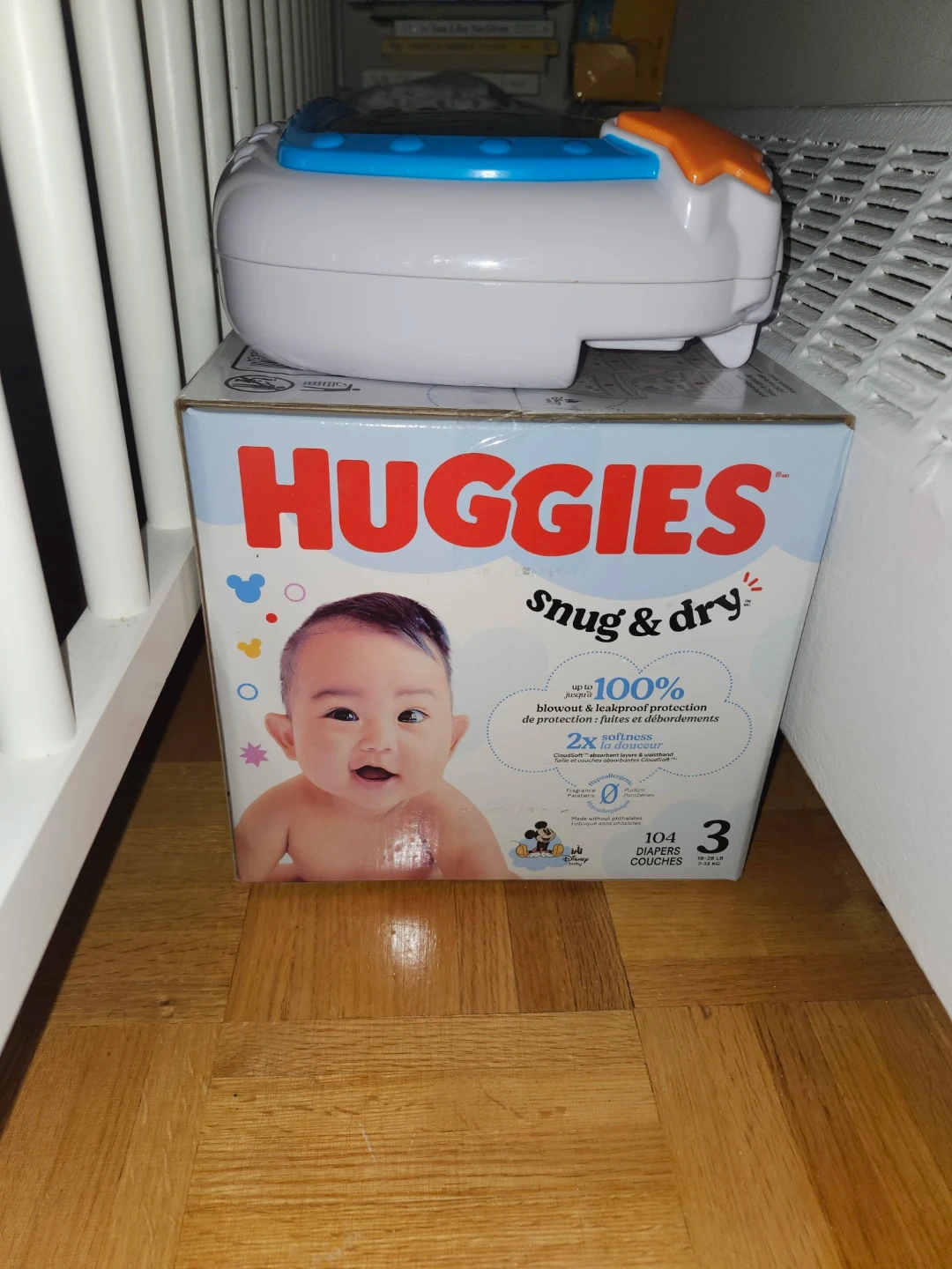 Selling a box of Huggies Snug & Dry diapers! These are size 3, and the box contains 104 diapers. They offer up to 100% blowout and leakproof protection, with 2x the cloud soft comfort. Perfect for your little one!