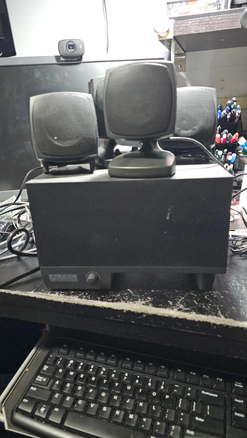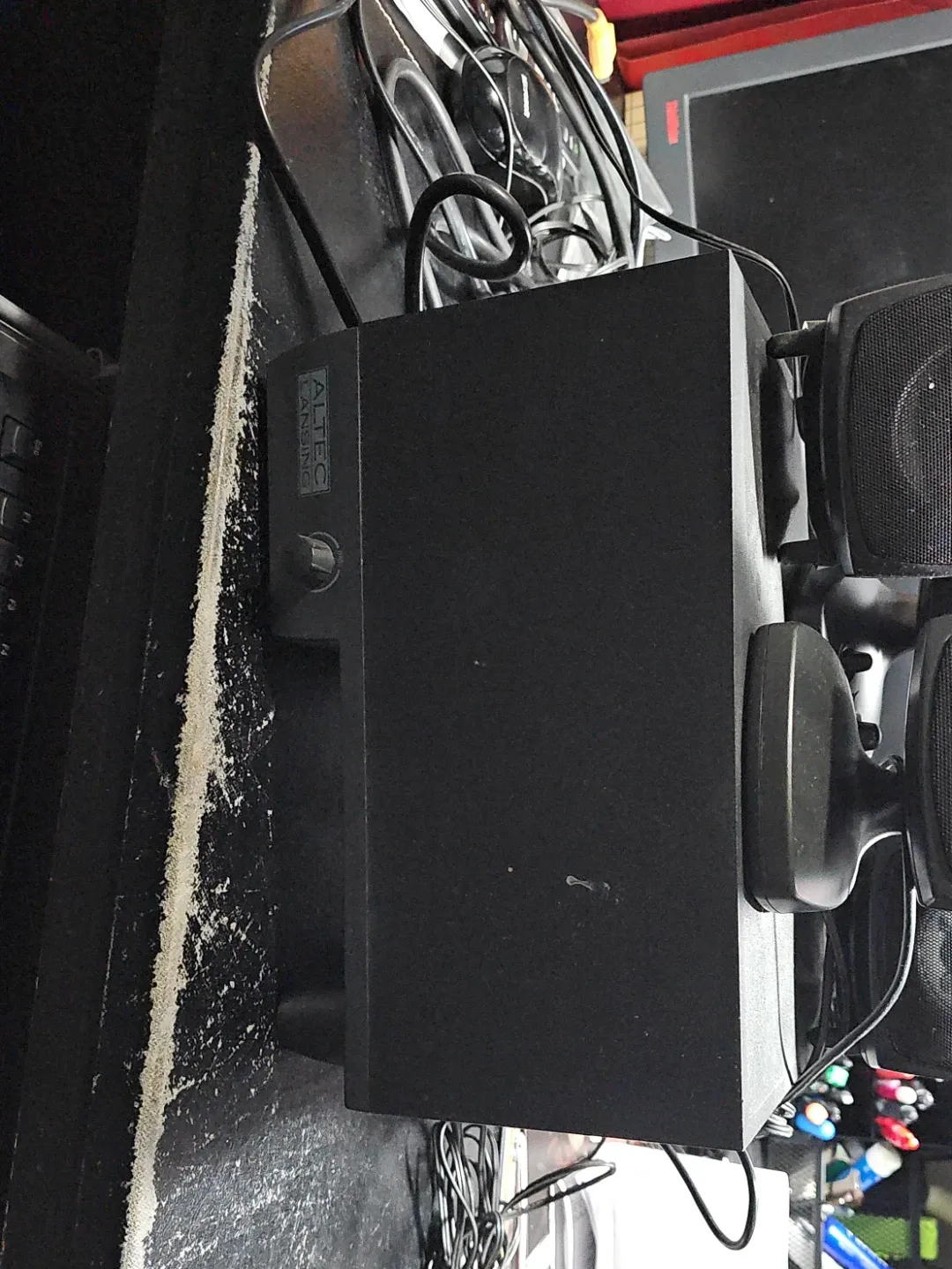Selling an Altec Lansing 2.1 speaker system. It's in good condition and ready to use! It features a subwoofer and two satellite speakers for a full sound experience