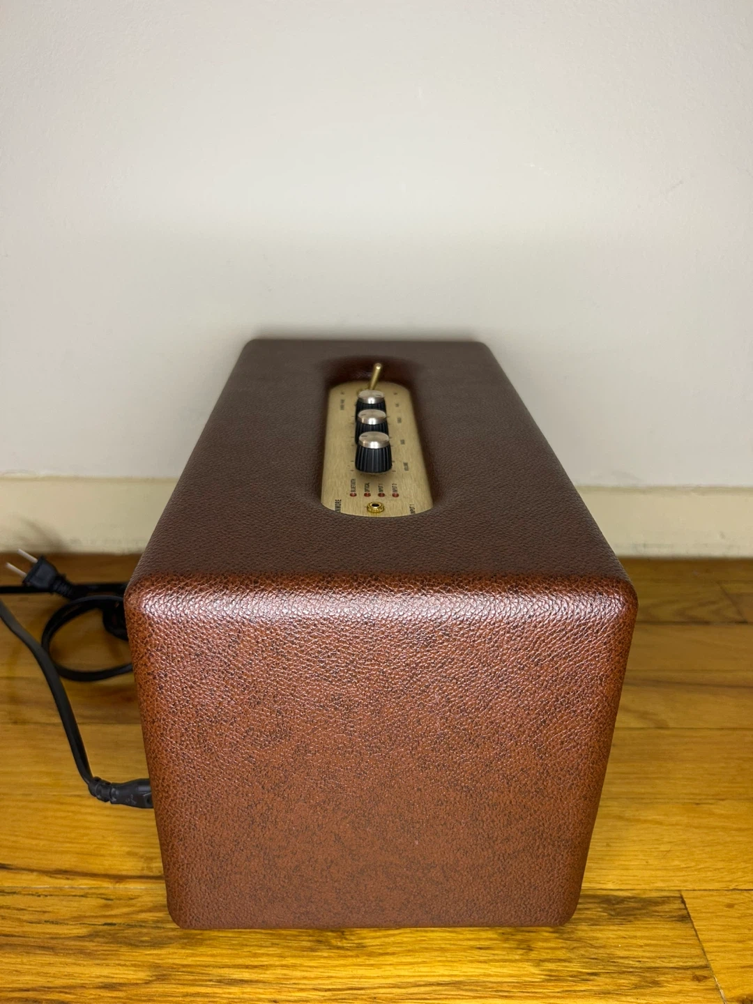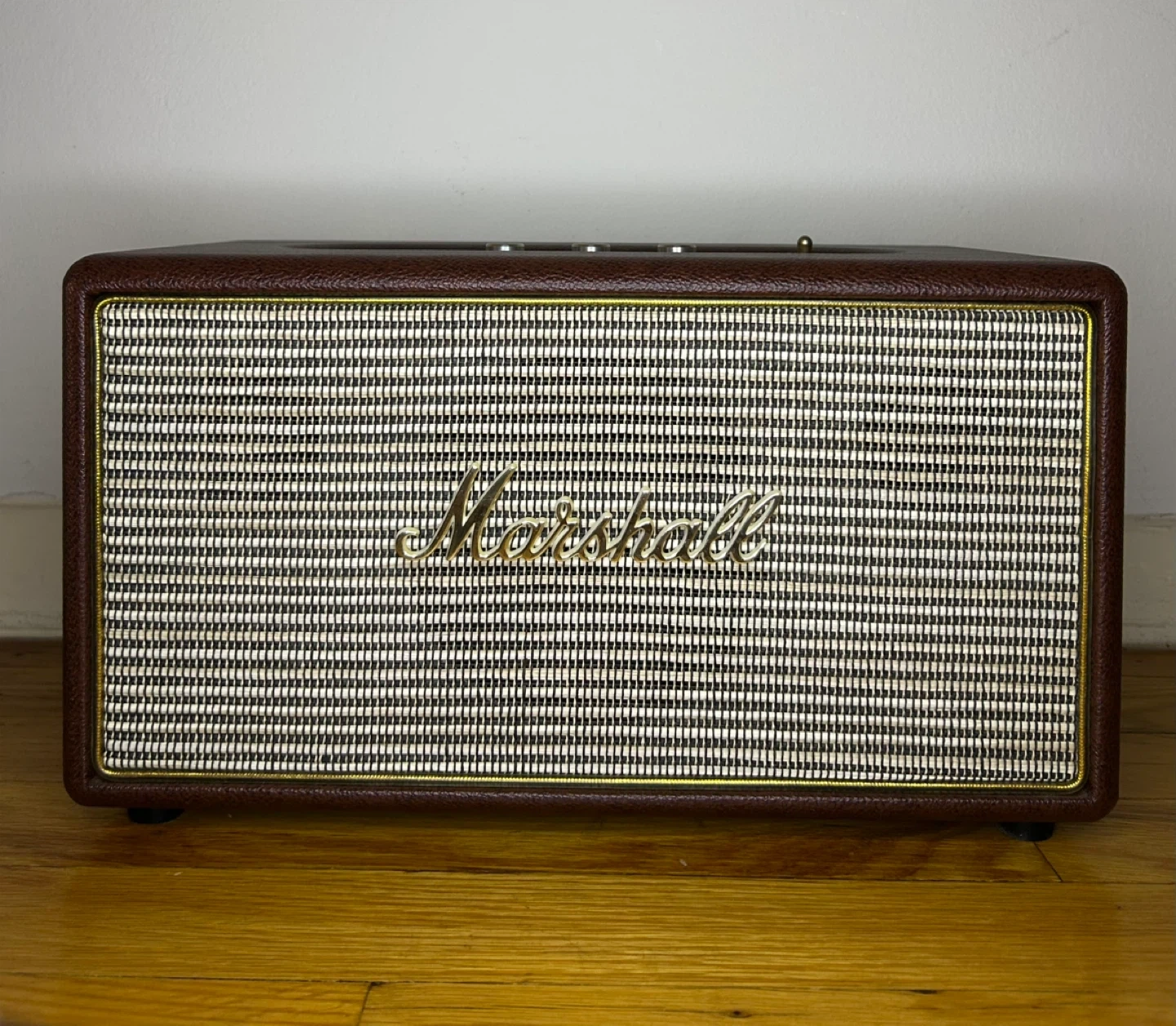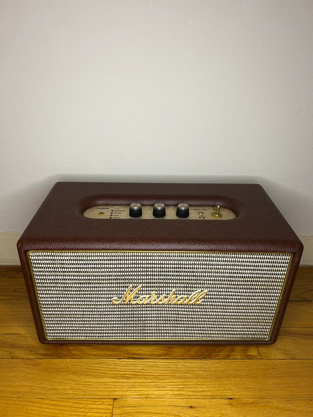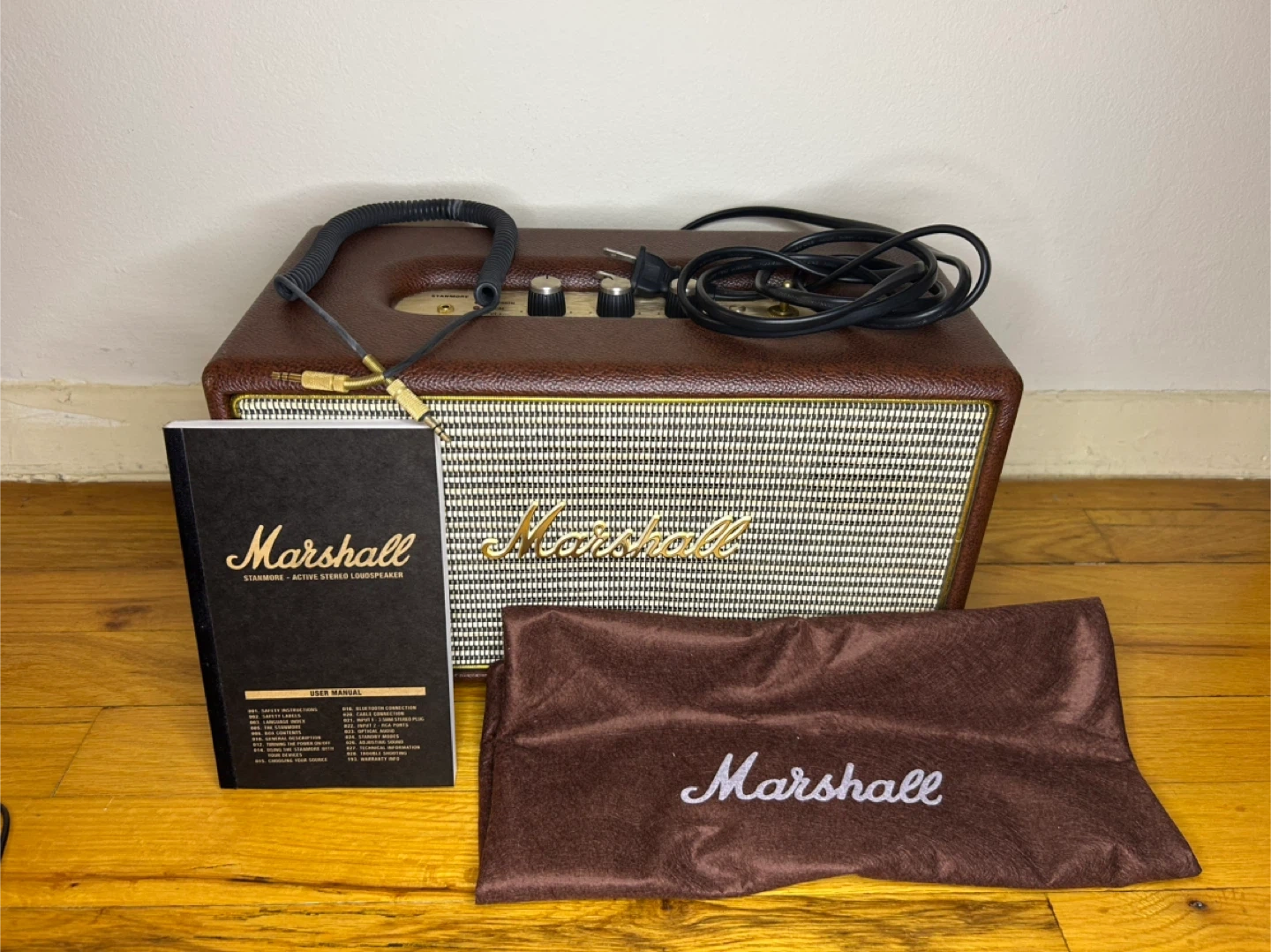 Selling a Marshall Stanmore II Bluetooth speaker in brown. Included dust bag, manual and 3.5mm cable. This speaker delivers powerful sound and classic Marshall design. Perfect for any music lover!