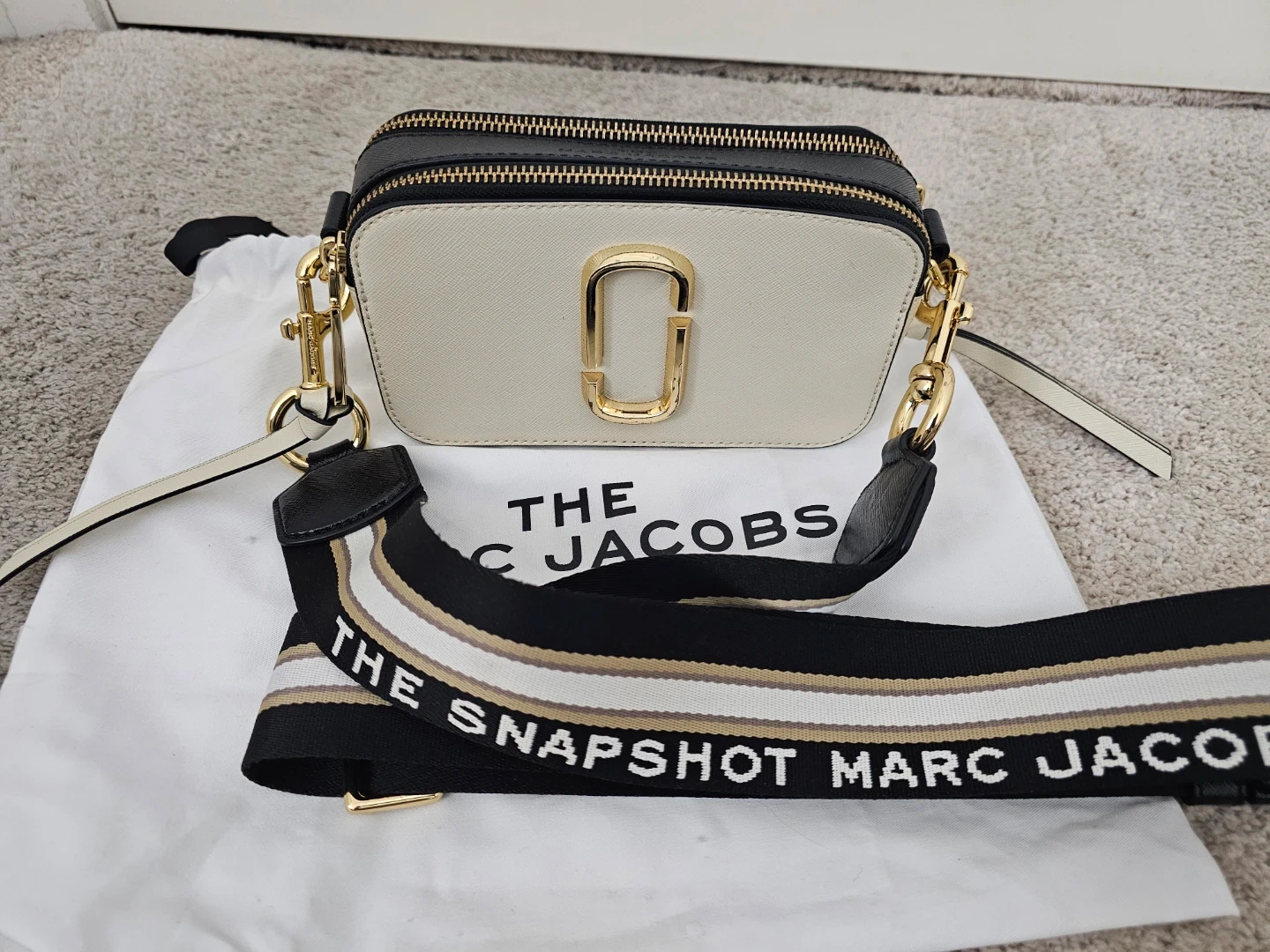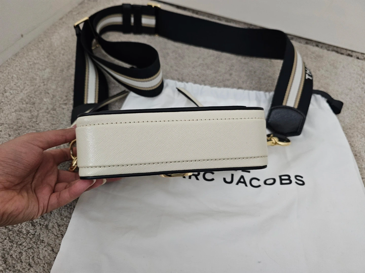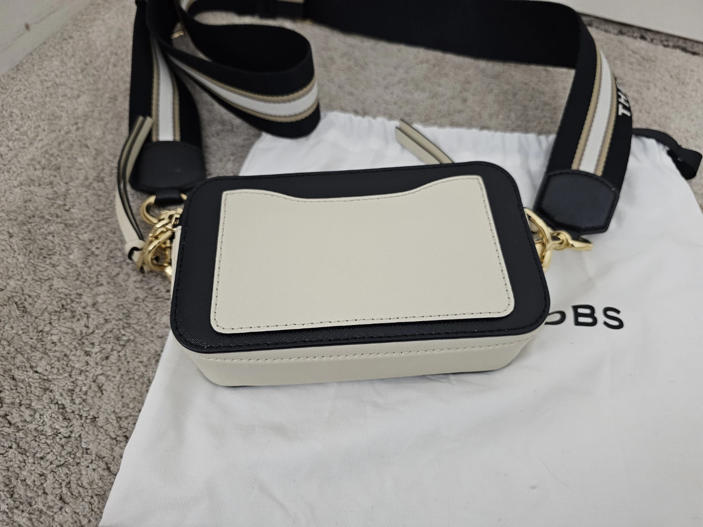 Selling a Marc Jacobs The Snapshot camera bag in a lovely neutral colour. It's in great condition and comes with the original dust bag! The strap is black and white with gold accents. Perfect for everyday use!