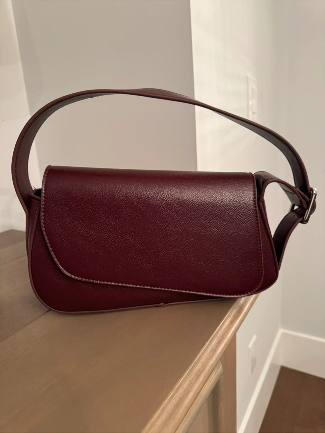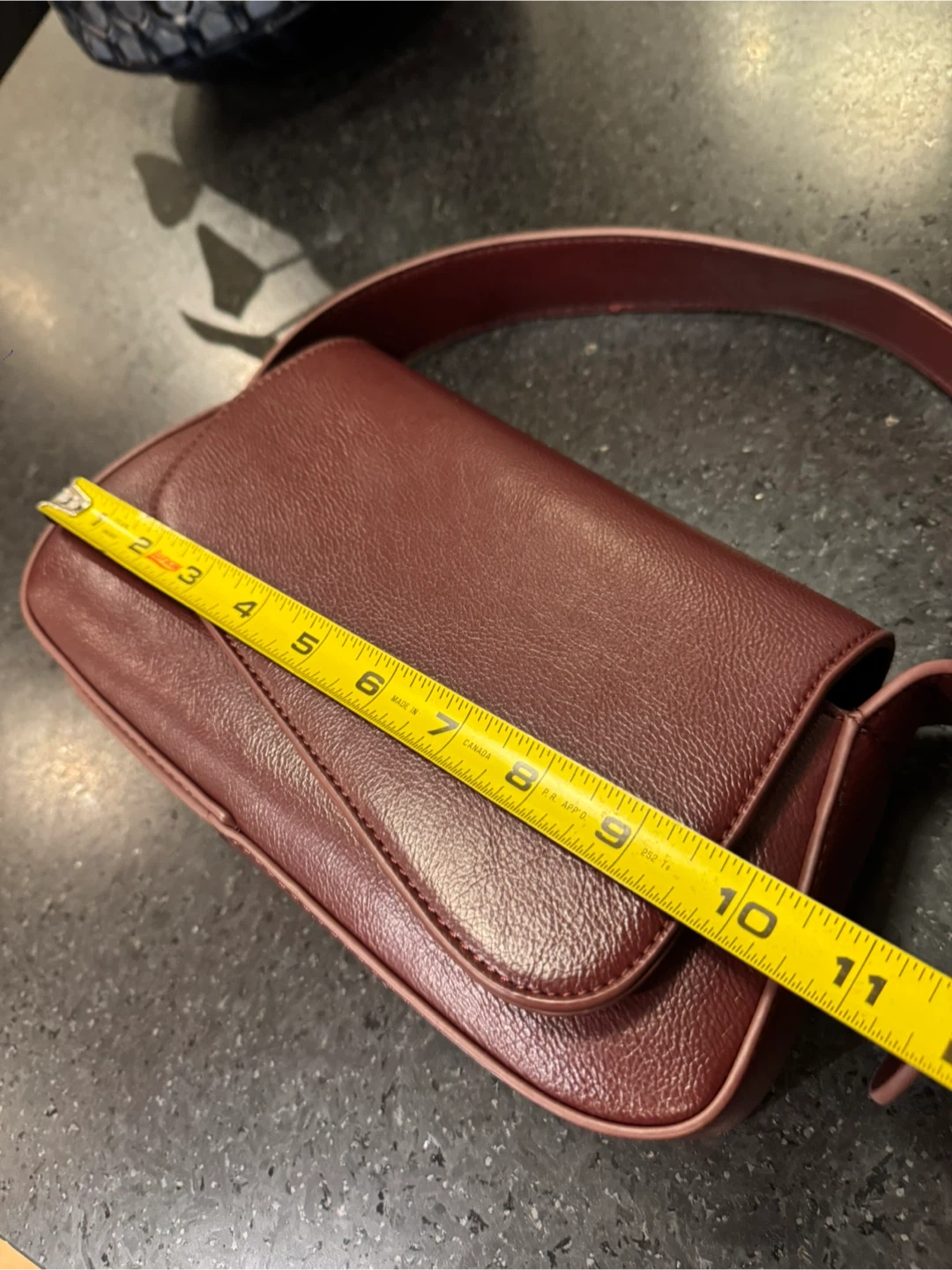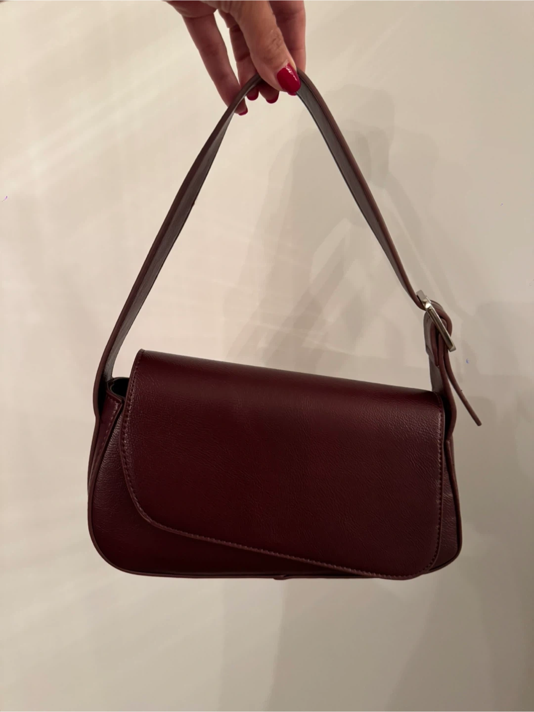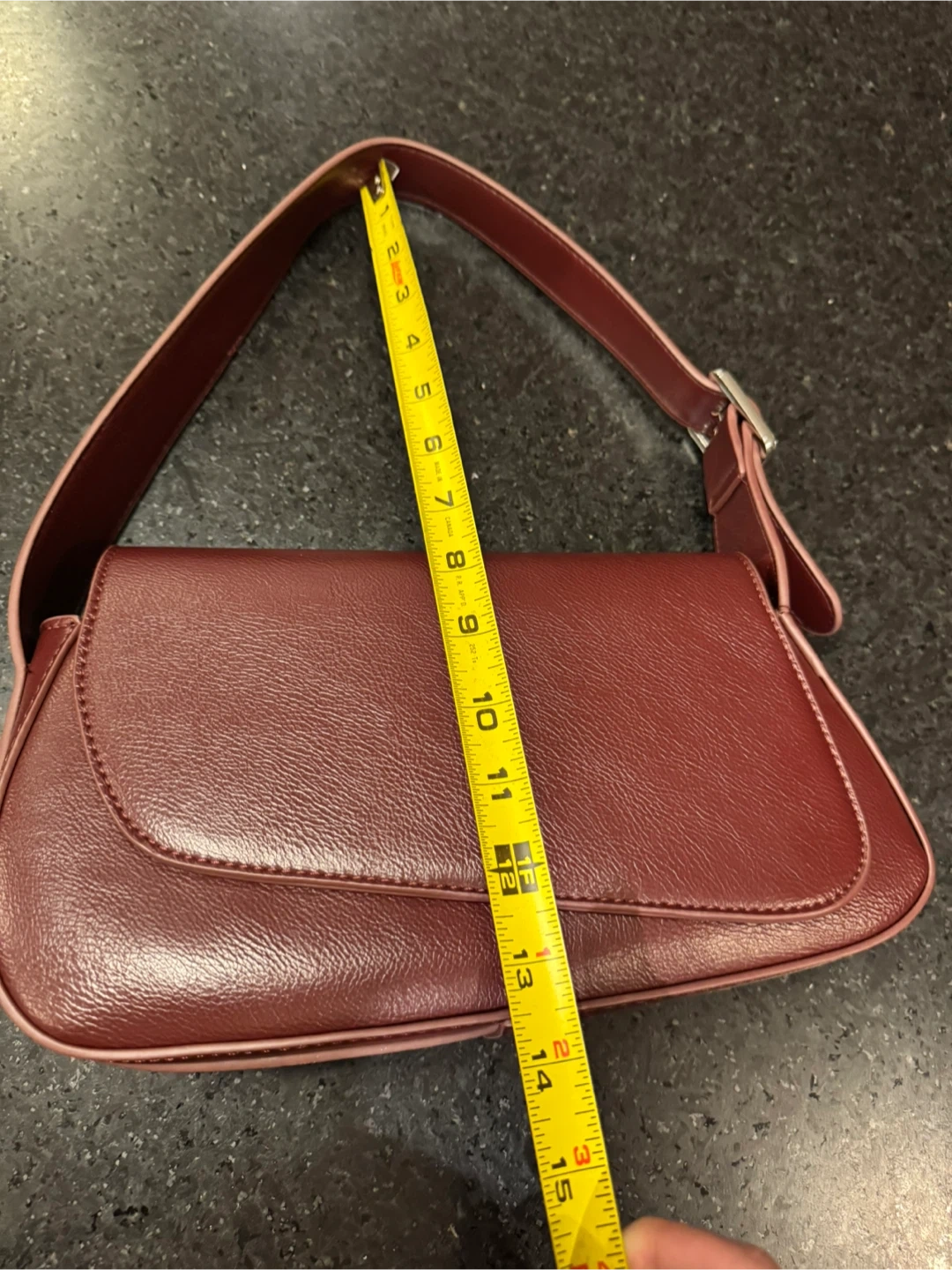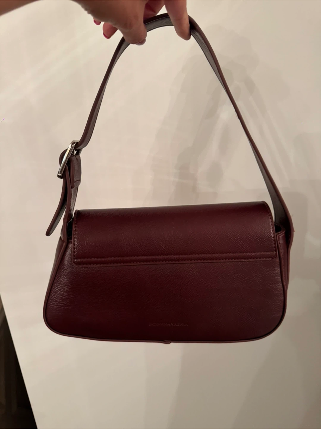 Selling a BCBGMAXAZRIA shoulder bag in a lovely burgundy colour! It's in great condition and ready for a new owner. The bag measures approximately 10 inches in length.